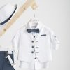 Βαπτιστικό κοστούμι Piccolino Lorenzo σε χρώμα Cobalt. Περιλαμβάνει λευκό γιλέκο, πουκάμισο βαμβακερό λευκό, παντελόνι βαμβακερό σε χρώμα cobalt, παπιγιόν μιας κατεύθυνσης με μύτη στο τελείωμα, τιράντες και καπέλο με φάσα. Διαθέσιμο σε 4 μεγέθη 6-12, 12-18, 18-24, 24-36(εξτρά χρέωση)