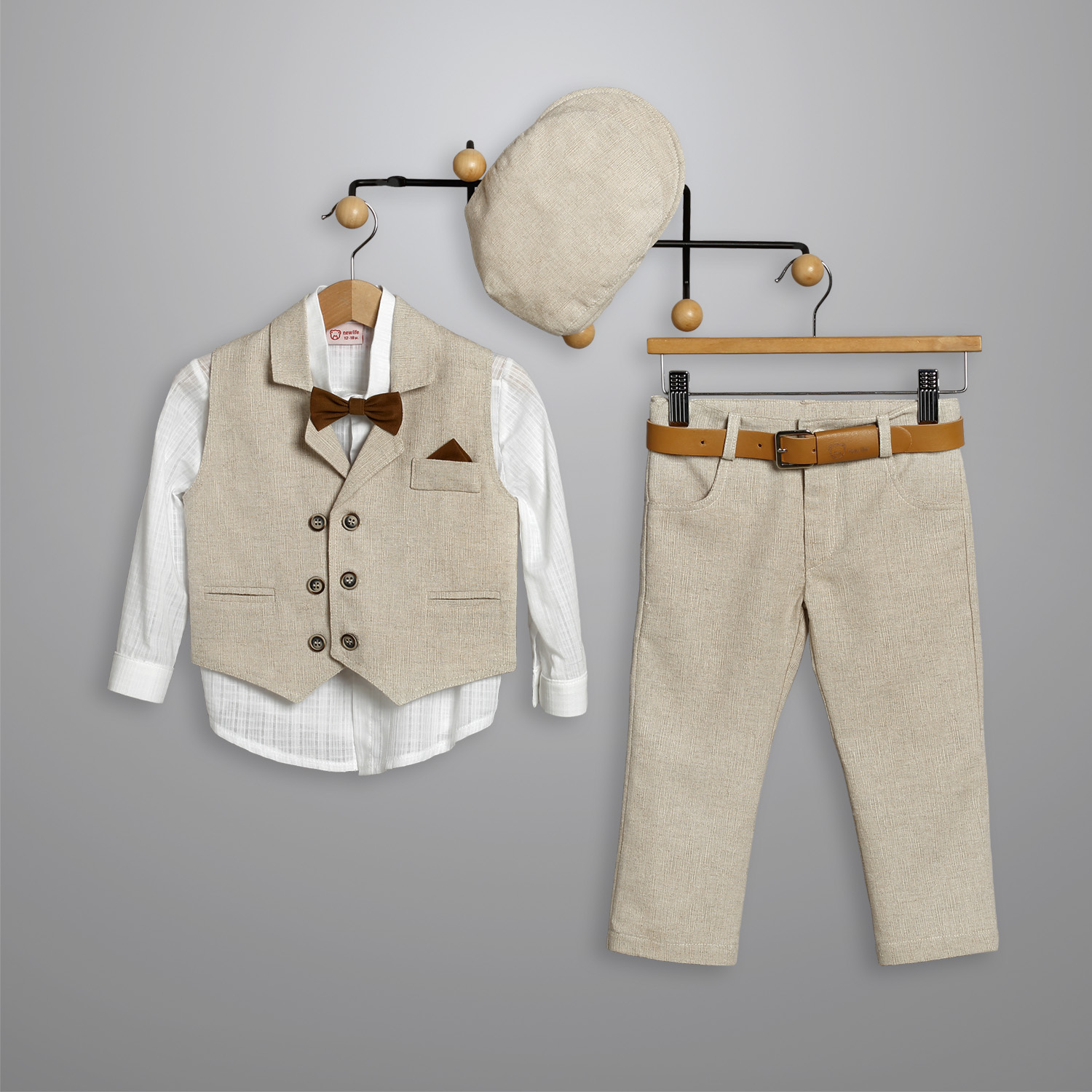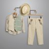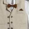 Βαπτιστικό κουστούμι που περιλαμβάνει Μπεζ λινό ψάθα παντελόνι, άσπρο βαμβακερό πουκάμισο και μπεζ λινό ψάθα γιλέκο.