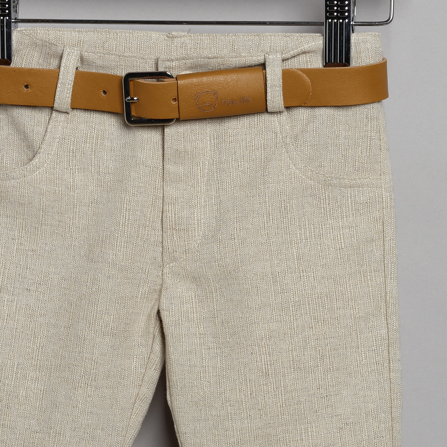 Βαπτιστικό κουστούμι που περιλαμβάνει Παντελόνι λινό ψάθα σε μπεζ χρώμα. Εσωτερικά υπάρχει λάστιχο με κουμπότρυπα για τη ρύθμιση της μέσης.