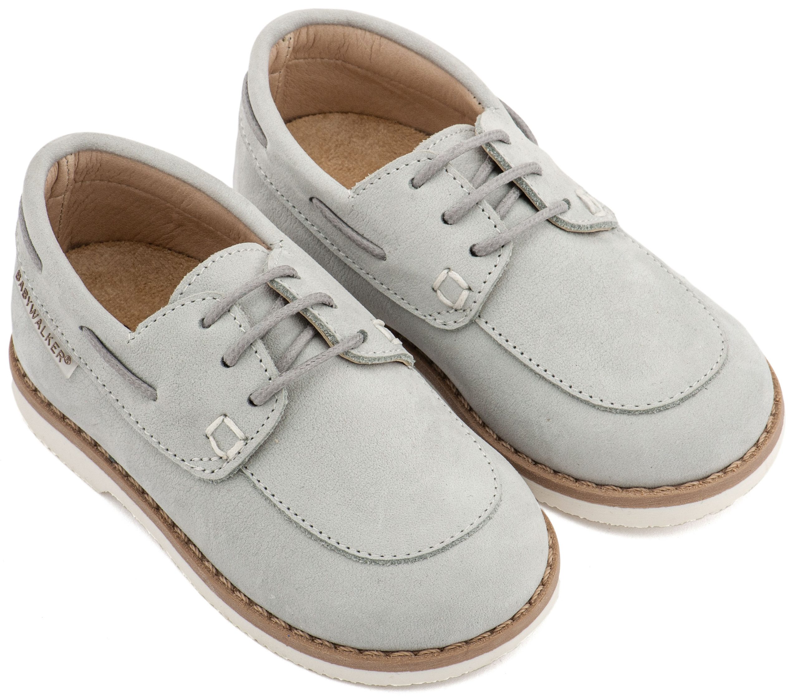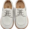 Δετό Δερμάτινο Μοκασίνι από Δέρμα Ναμπούκ με Κορδόνι σε Λευκό Χρώμα.