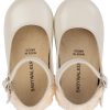 Δερμάτινο Γαλλικό Γοβάκι με Διακοσμημένη Φτέρνα από Chiffon Λουλούδια σε Εκρού Χρώμα.