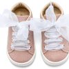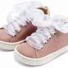Sneaker απο Μεταλιζέ Ύφασμα και Δέσιμο Κορδέλα Οργάντζας σε Ροζ Χρώμα.