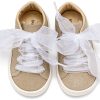 Sneaker απο Μεταλιζέ Ύφασμα και Δέσιμο Κορδέλα Οργάντζας σε Πλατίνα Χρώμα.