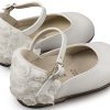 Δερμάτινο Γαλλικό Γοβάκι με Διακοσμημένη Φτέρνα από Chiffon Λουλούδια σε Λευκό Χρώμα.