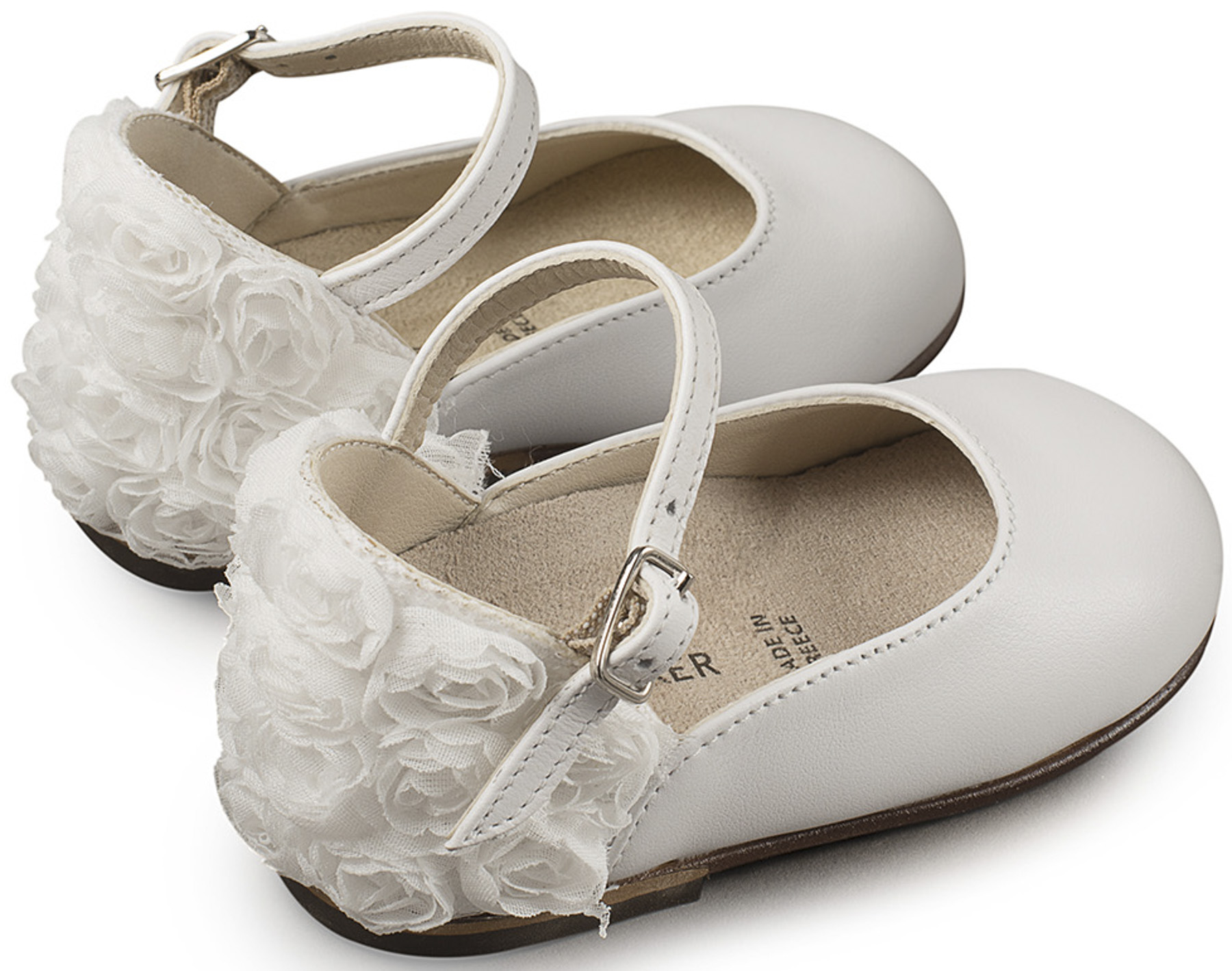 Γαλλικό Γοβάκι με Διακοσμημένη Φτέρνα απο Λουλούδια BW4503 Λευκό Της Εταιρίας BABYWALKER.