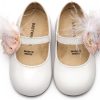 Δερμάτινο Γοβάκι Μονή Μπαρέτα με Χειροποίητο Διακοσμητικό από Λουλούδια και Πούπουλα σε Λευκό Ροζ Χρώμα.