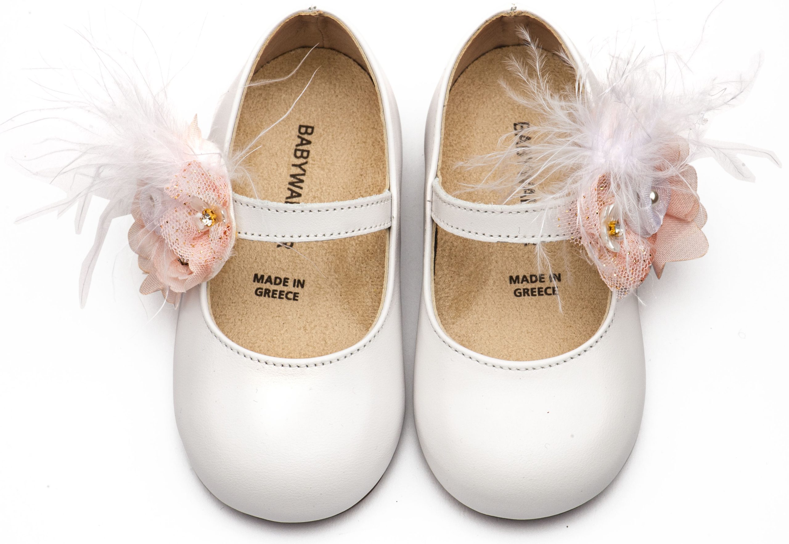 Γοβάκι με Λουλούδια και Πούπουλα BW4887 Λευκό Ροζ Της Εταιρίας BABYWALKER.