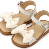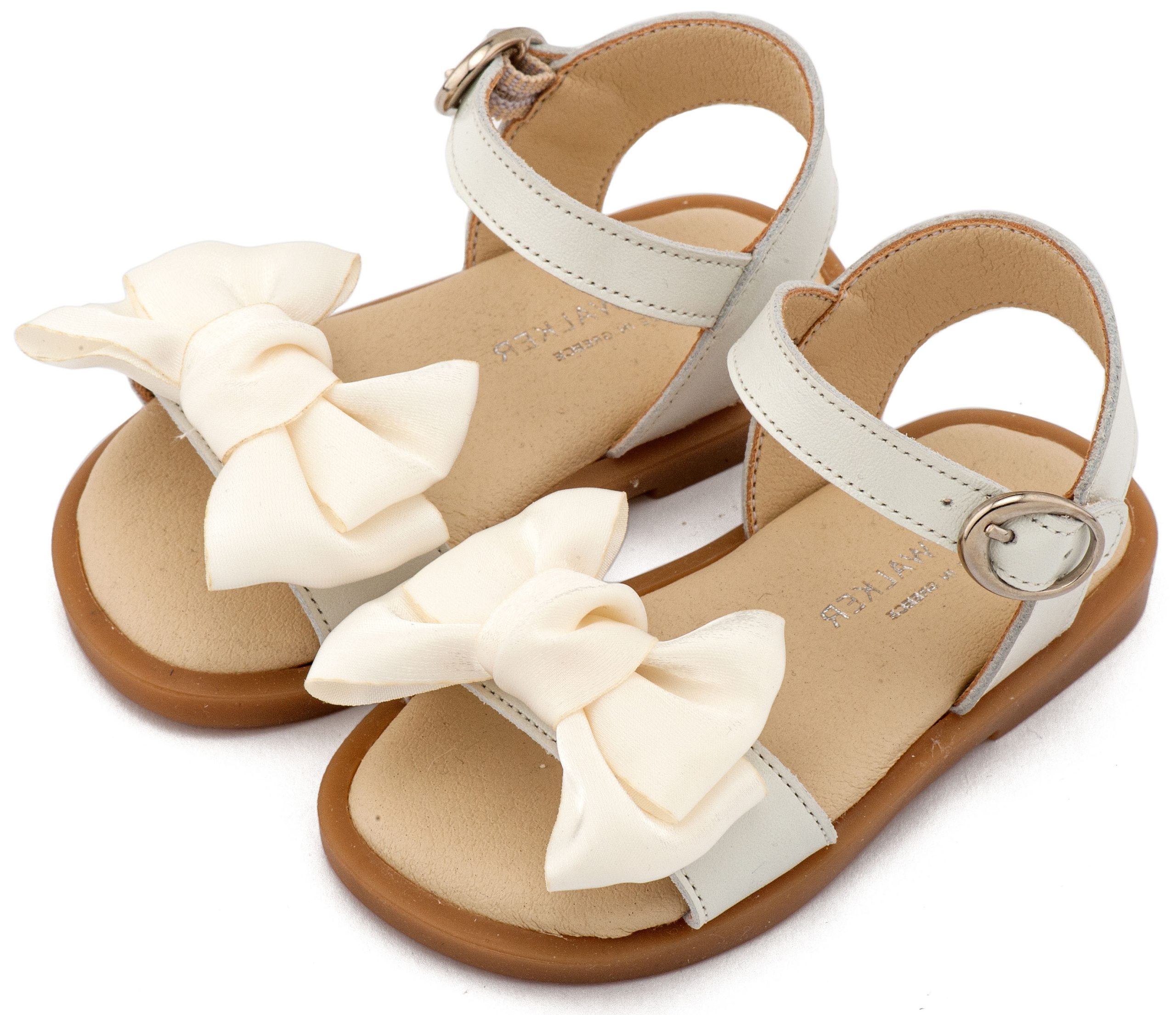Δερμάτινο Πέδιλο Διακοσμημένο με Χειροποίητο Φιόγκο Οργάντζας και Πέρλες σε Εκρού Χρώμα.