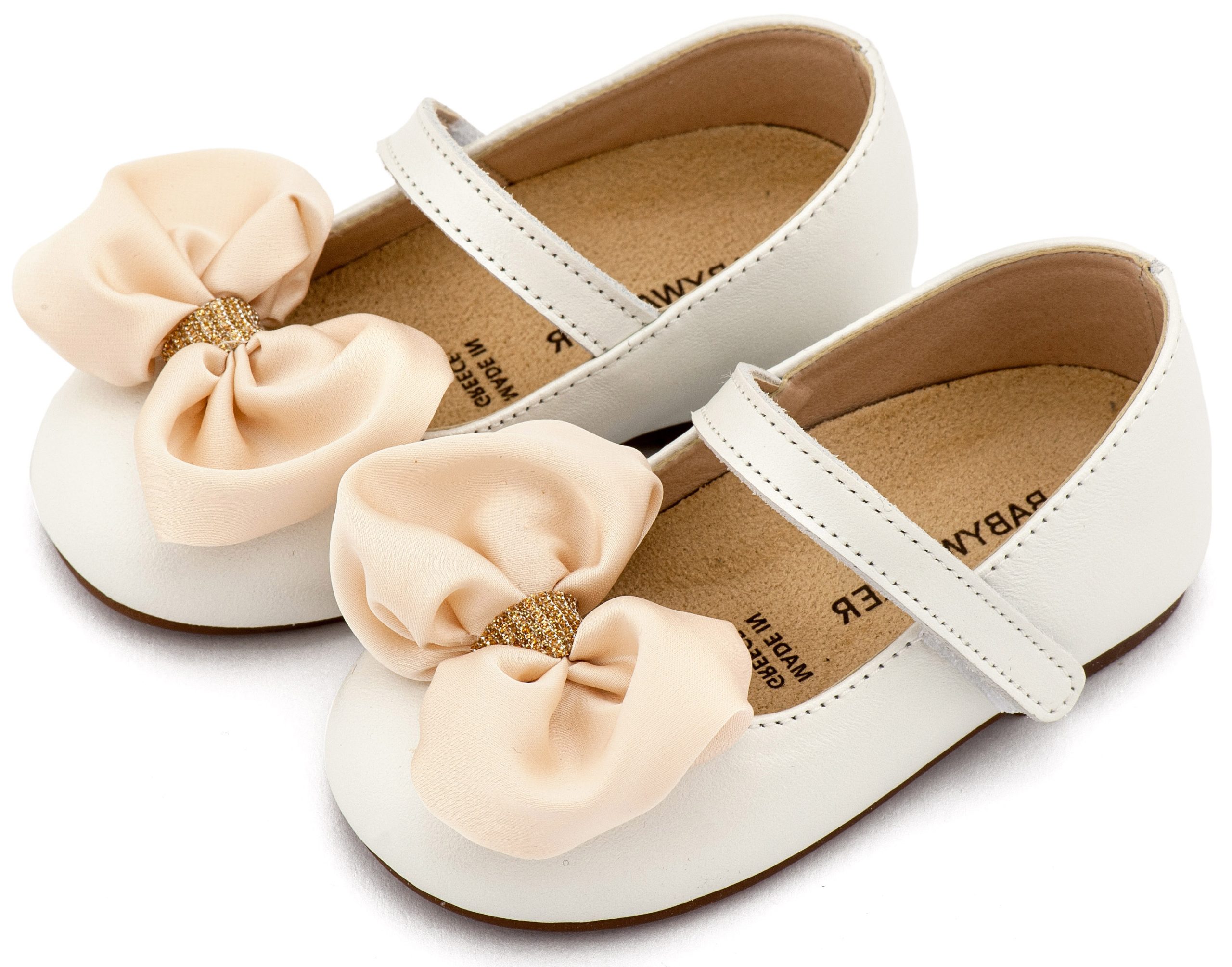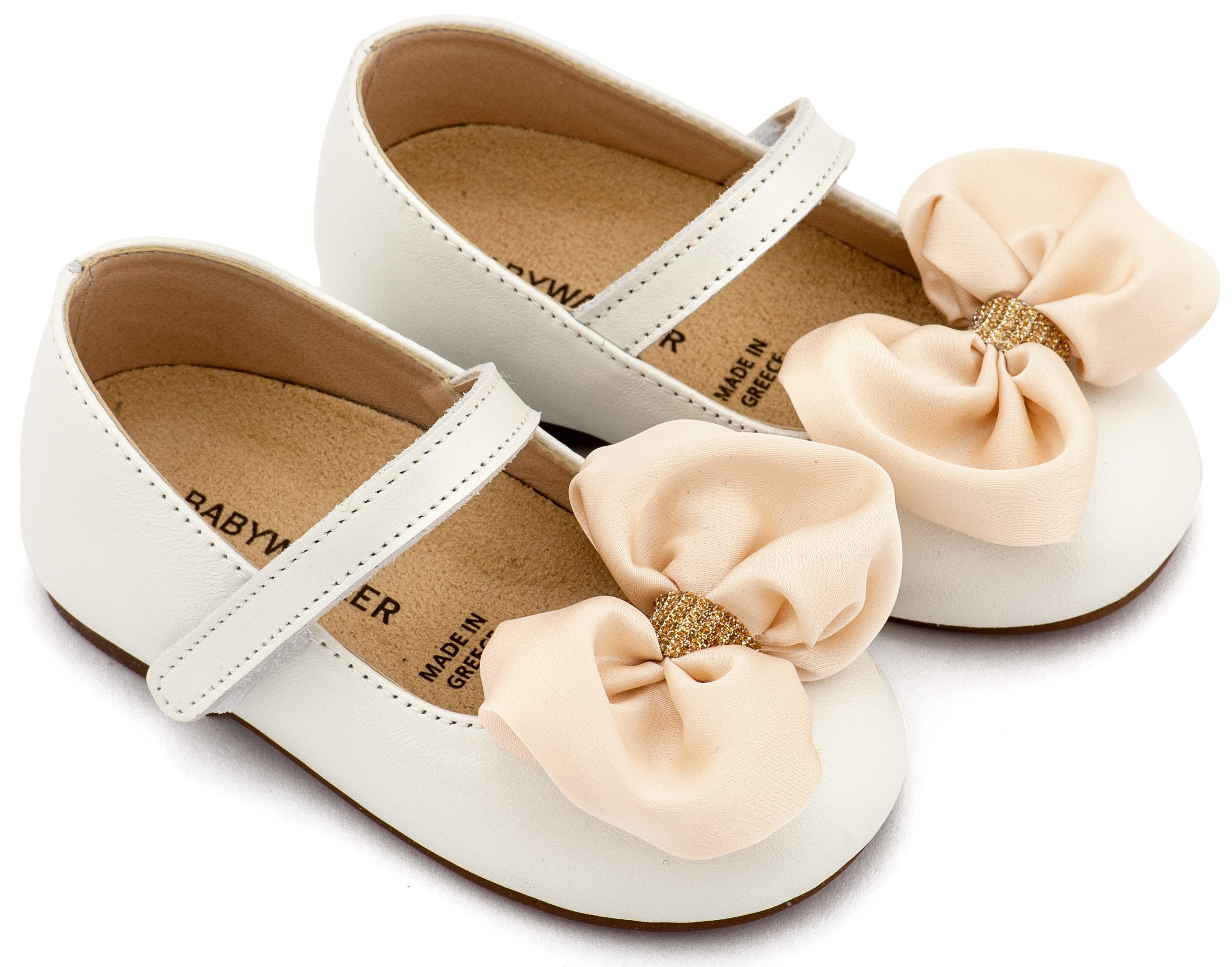 Γοβάκι Μονή Μπαρέτα με Σατέν Φιόγκο BW4893 Εκρού Της Εταιρίας BABYWALKER.