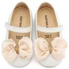 Δερμάτινο Γοβάκι Μονή Μπαρέτα Χρατς με Σατέν Χειροποίητο Φιόγκο σε Εκρού Χρώμα.