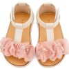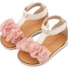 Δερμάτινο Πέδιλο Διακοσμημένο με Χειροποίητο Διακοσμητικό Οργάντζας και Παγιέττες σε Εκρού Ροζ Χρώμα.