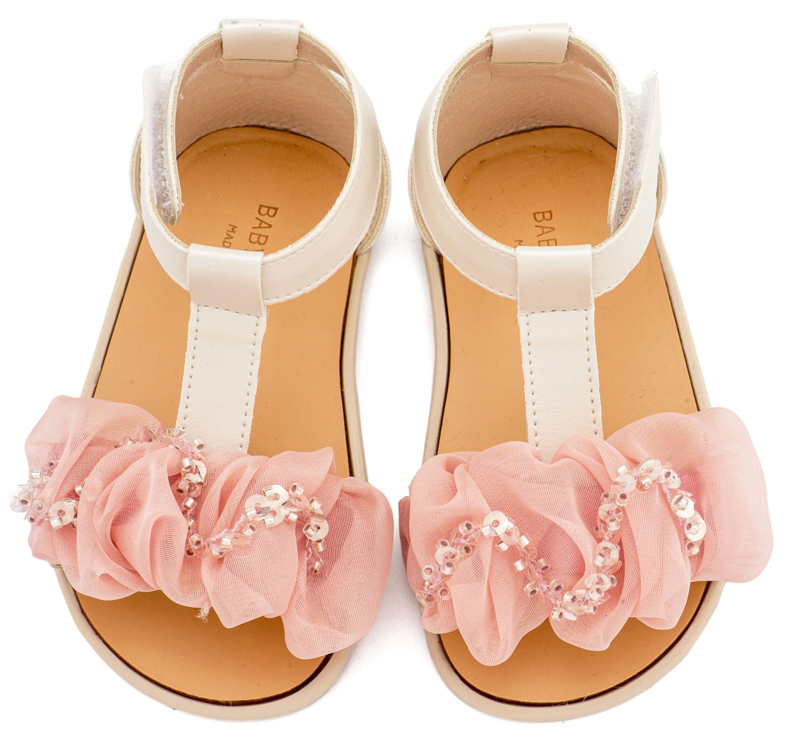 Πέδιλο με Διακοσμητικό Οργάντζας BS3601 Εκρού Ροζ Της Εταιρίας BABYWALKER.