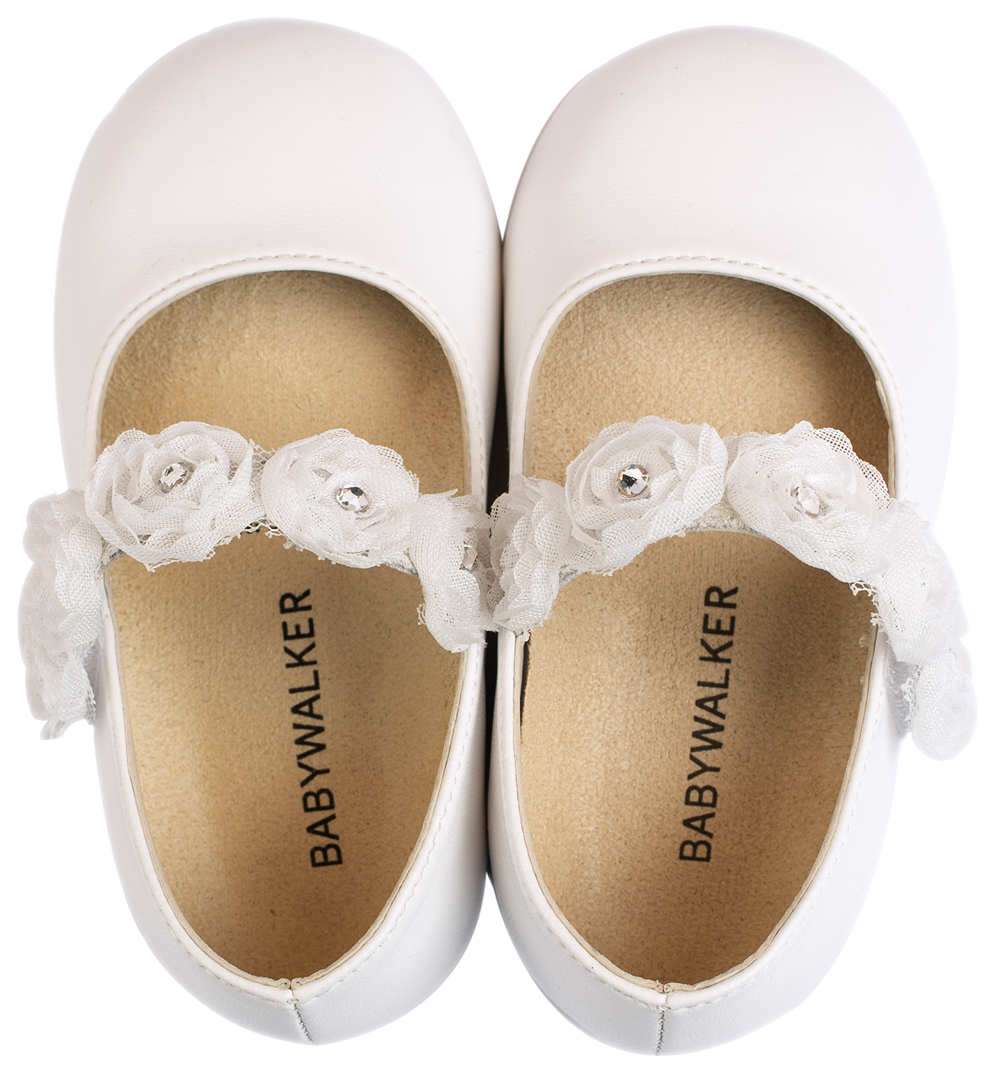 Γοβάκι Μονή Μπαρέτα με Λουλούδια BS3523 Λευκό Της Εταιρίας BABYWALKER.