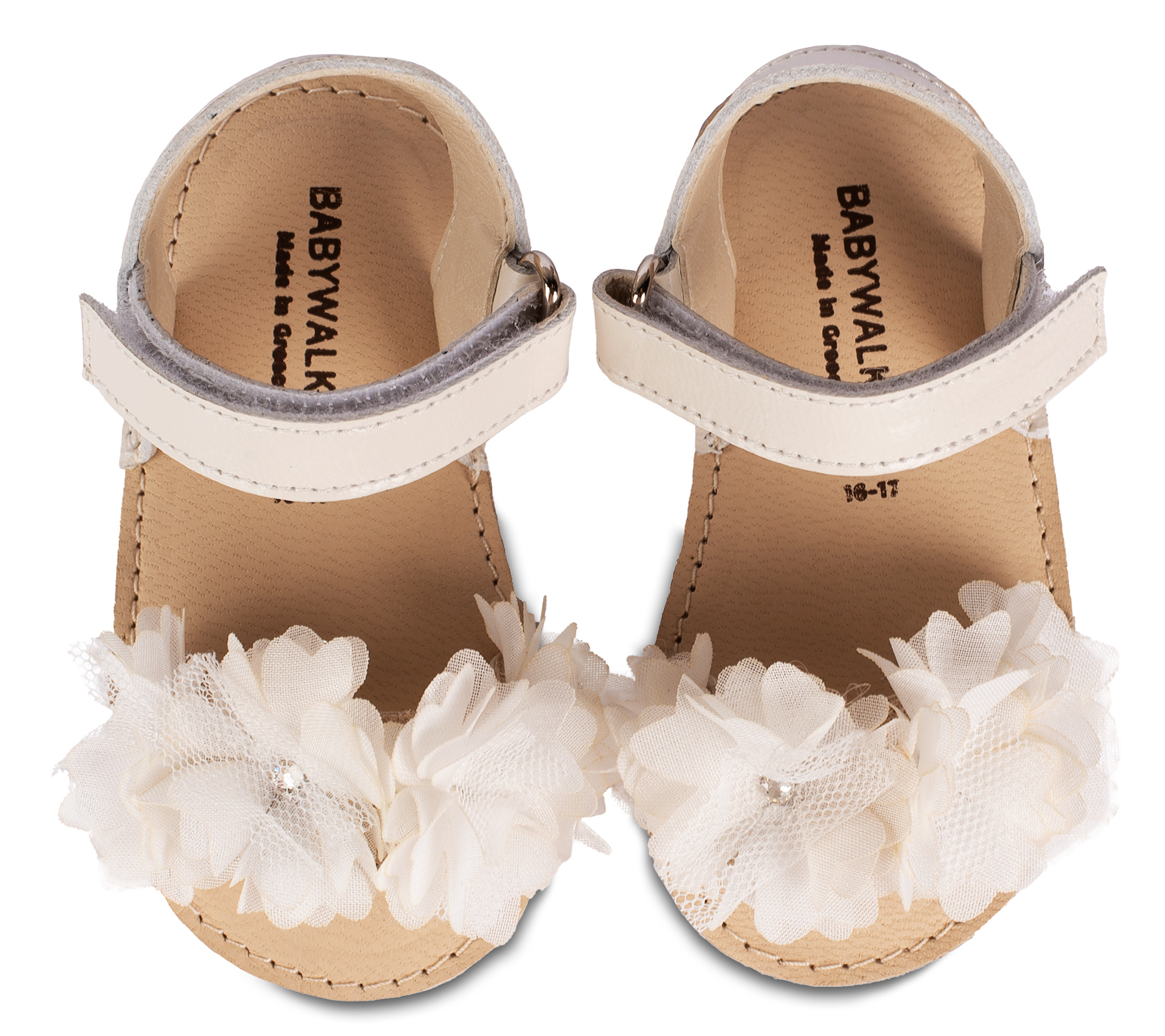 Πέδιλο με Chiffon Λουλούδια MI1633 Εκρού Της Εταιρίας BABYWALKER.