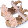 Δερμάτινο Πέδιλο με Chiffon Λουλούδια σε Ροζ Χρώμα.