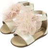 Δερμάτινο Πέδιλο Διακοσμημένο με Chiffon Πον Πον από Δέρμα Πέρλα σε Εκρού Ροζ Χρώμα.