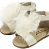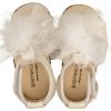 Δερμάτινο Πέδιλο Διακοσμημένο με Chiffon Πον Πον από Δέρμα Πέρλα σε Εκρού Χρώμα.