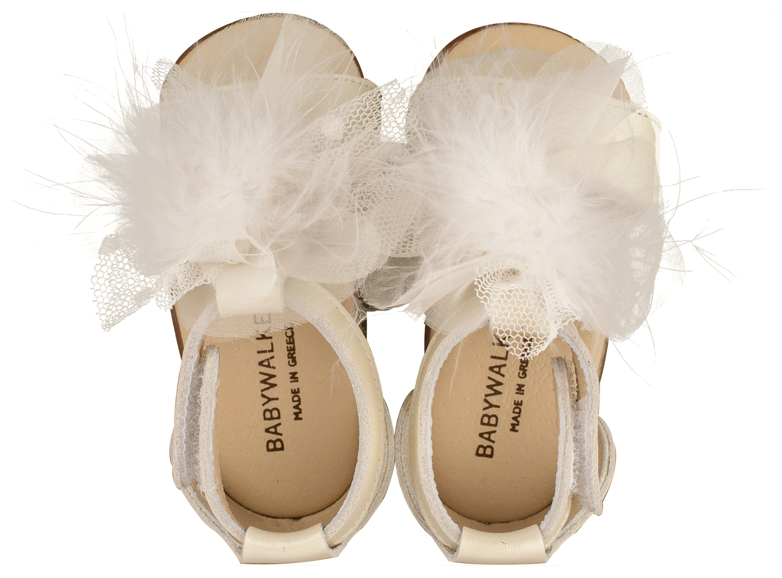 Δερμάτινο Πέδιλο Διακοσμημένο με Πον Πον PRI2599 Εκρου Της Εταιρίας BABYWALKER.