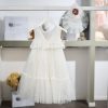 Αέρινο και φίνο, το συγκεκριμένο βαπτιστικό φόρεμα ξεχωρίζει για τις πλούσιες υφές και τις ιδιαίτερες διακοσμητικές λεπτομέρειες. Η ιβουάρ απόχρωση αναδεικνύει τη δαντέλα και το τούλι, δημιουργώντας ένα καλαίσθητο αποτέλεσμα ιδανικό για την ημέρα της βάπτισης.