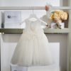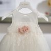 Η αέρινη κομψότητα και οι ρομαντικές λεπτομέρειες αναδεικνύουν αυτό το ιδιαίτερα καλαίσθητο βαπτιστικό φόρεμα σε ιβουάρ απόχρωση.