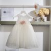 Η αέρινη κομψότητα και οι ρομαντικές λεπτομέρειες αναδεικνύουν αυτό το ιδιαίτερα καλαίσθητο βαπτιστικό φόρεμα σε ιβουάρ απόχρωση.