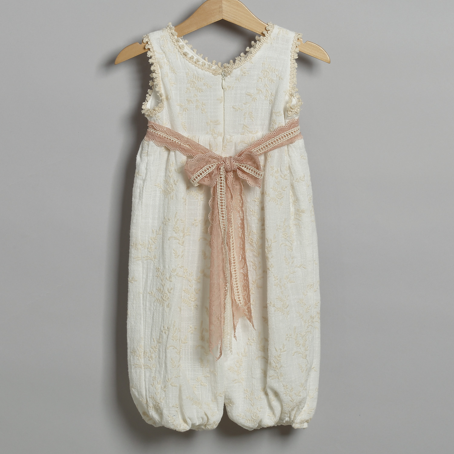 Σαλβάρι από εκρού κεντημένη λινή γάζα στολισμένη με δαντελένια ζώνη και πλεκτά τρεσάκια.