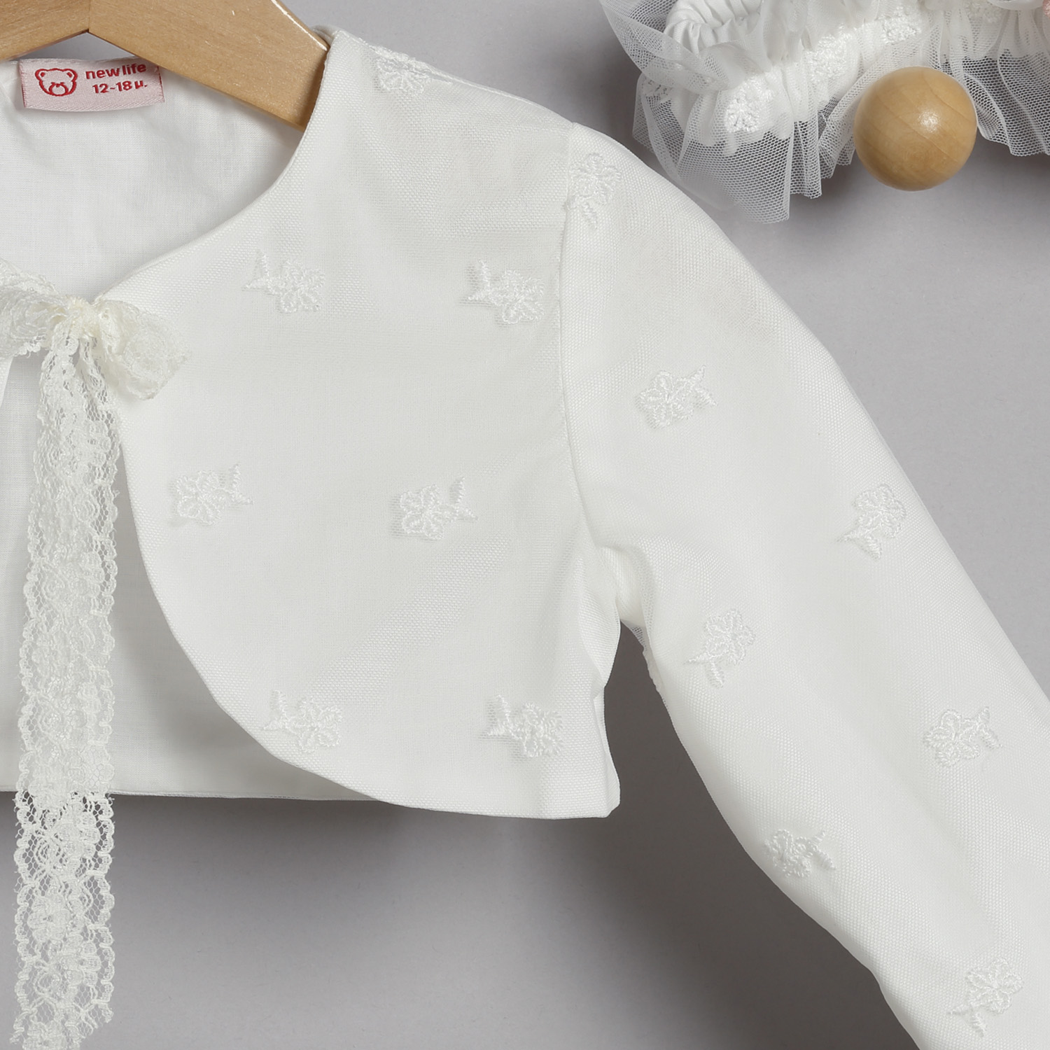 Ζακετάκι από τούλινη δαντέλα σε εκρού χρώμα, επενδυμένο με βαμβακερή φόδρα με