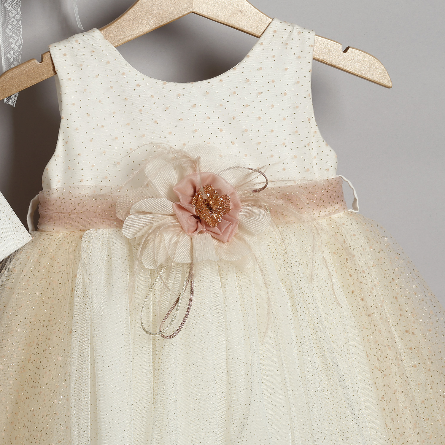Βαπτιστικό φόρεμα από γκλίτερ τούλι σε χρυσό χρώμα.
