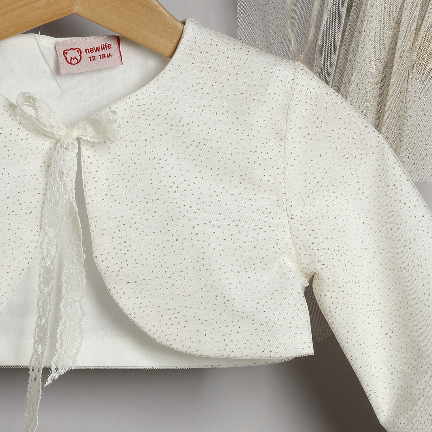 Ζακετάκι από γκλίτερ τούλι σε χρυσό χρώμα, επενδυμένο με βαμβακερή φόδρα.