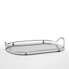 Στρογγυλός μεταλλικός ασημένιος δίσκος με καθρέφτη,