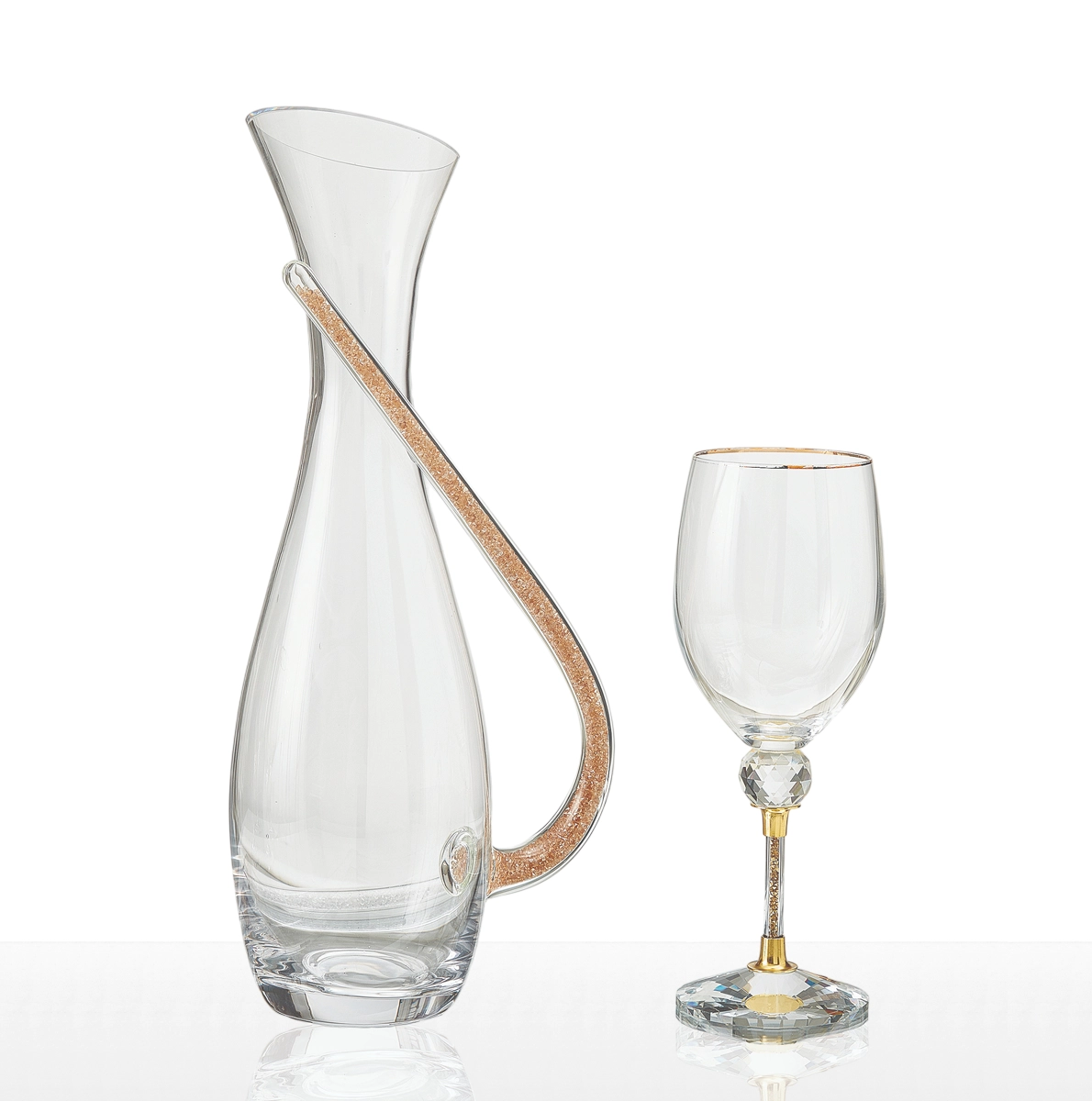 Σετ ποτηριού και καράφας γάμου από κρύσταλλο με χρυσό glitter.