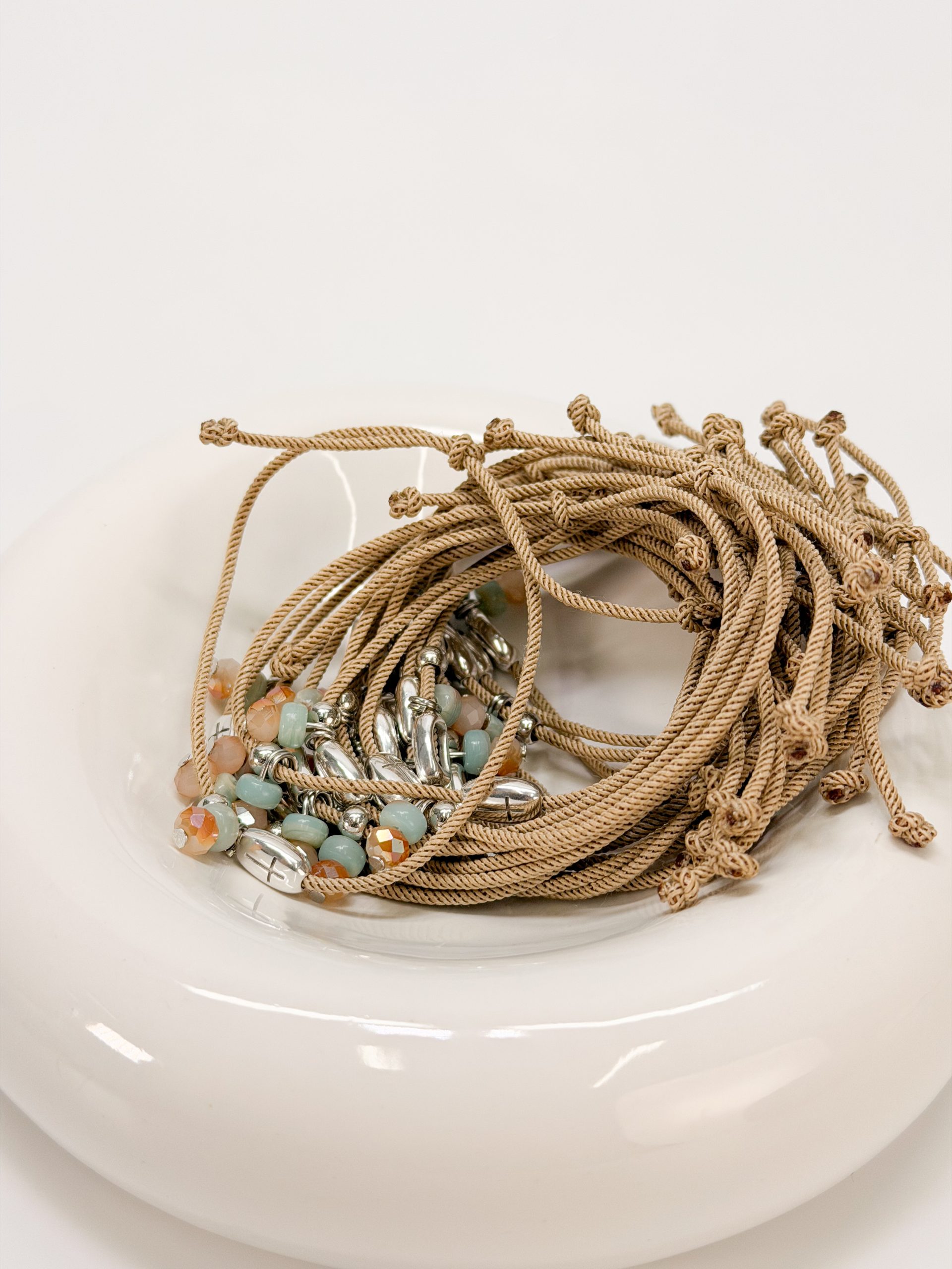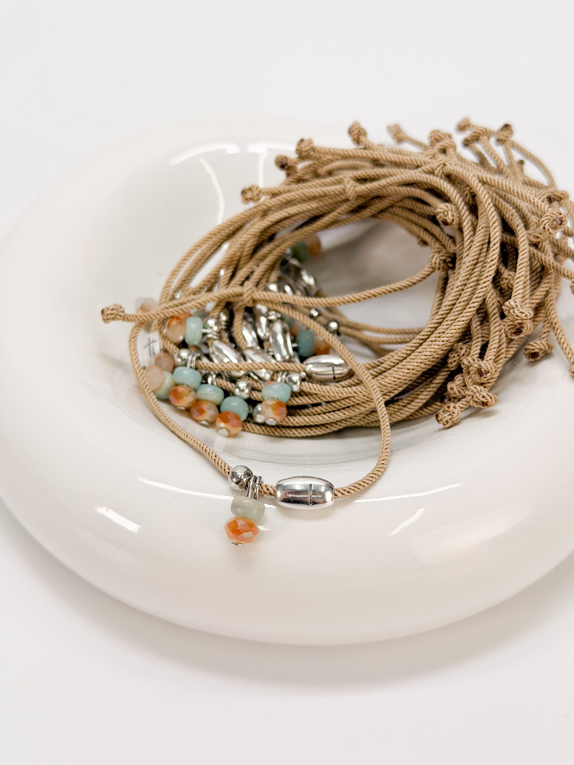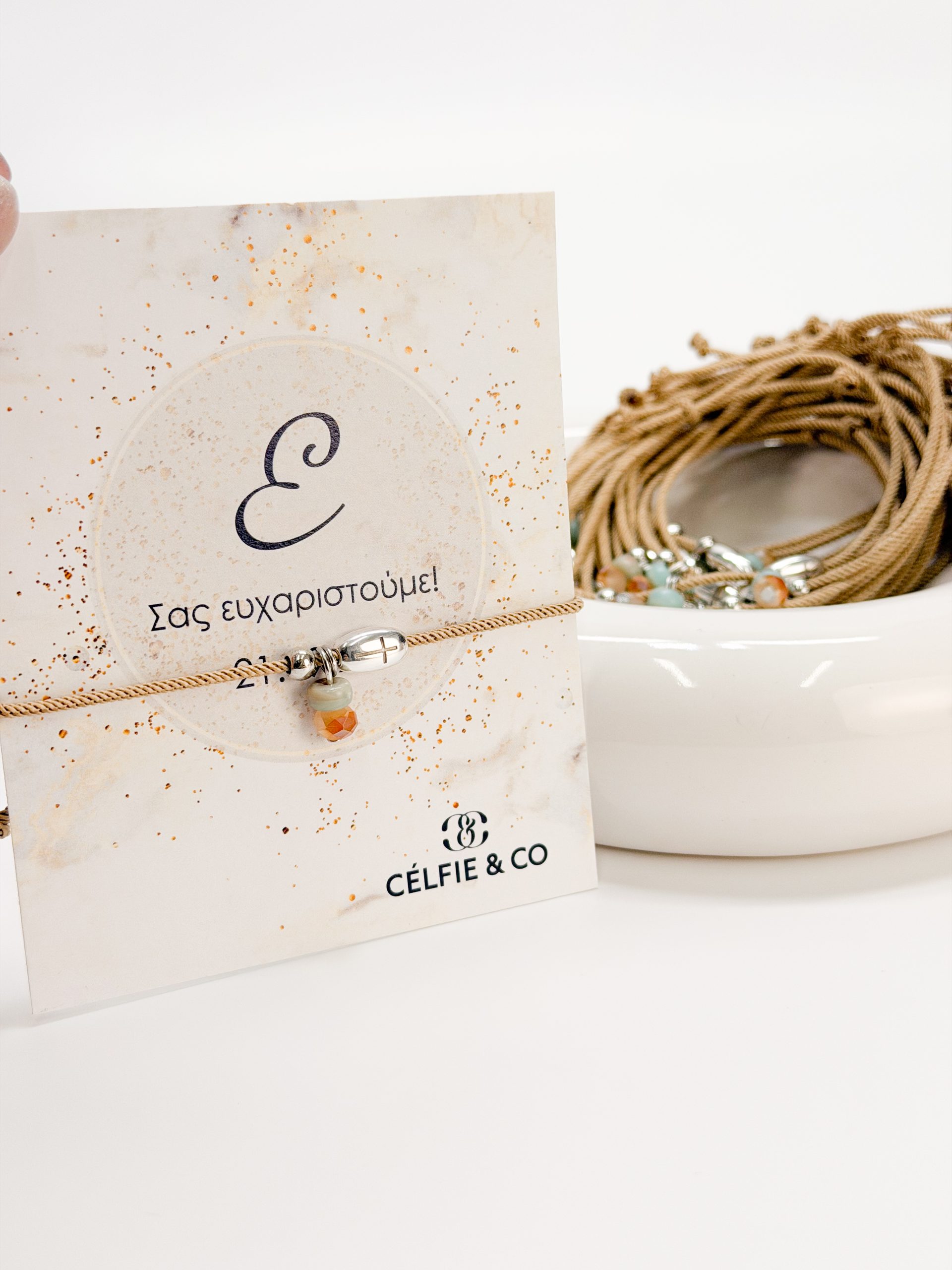 Μαρτυρικό βραχιόλι CELFIE AND CO M-49 με μπεζ κορδόνι,διχρωμη βεραμάν χάντρα,ασημι χάντρα,