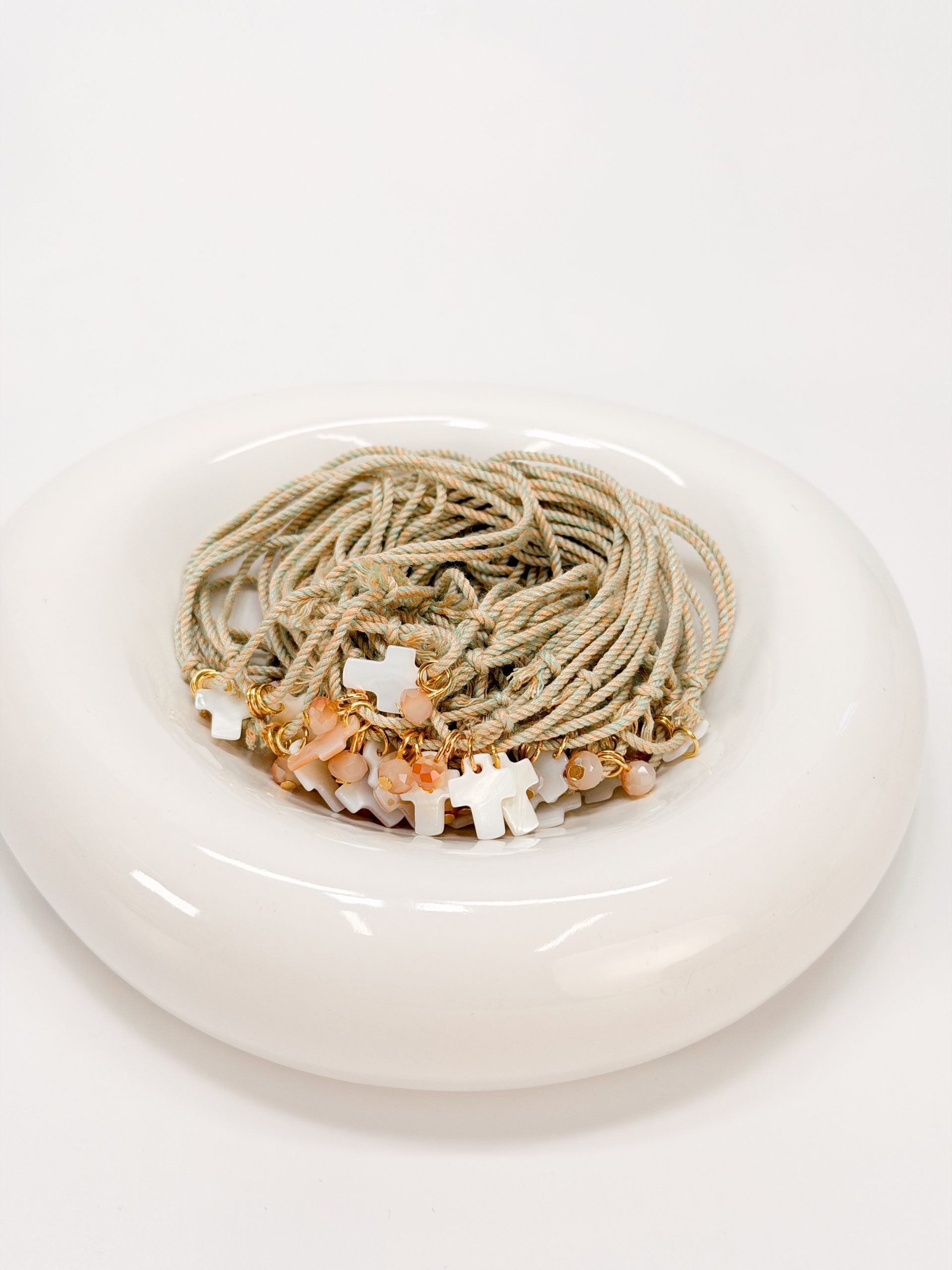 Μαρτυρικό βραχιόλι CELFIE AND CO M-51 με δίχρωμο κορδόνι,σταυρό φίλντισι και κρύσταλλο δίχρωμο.