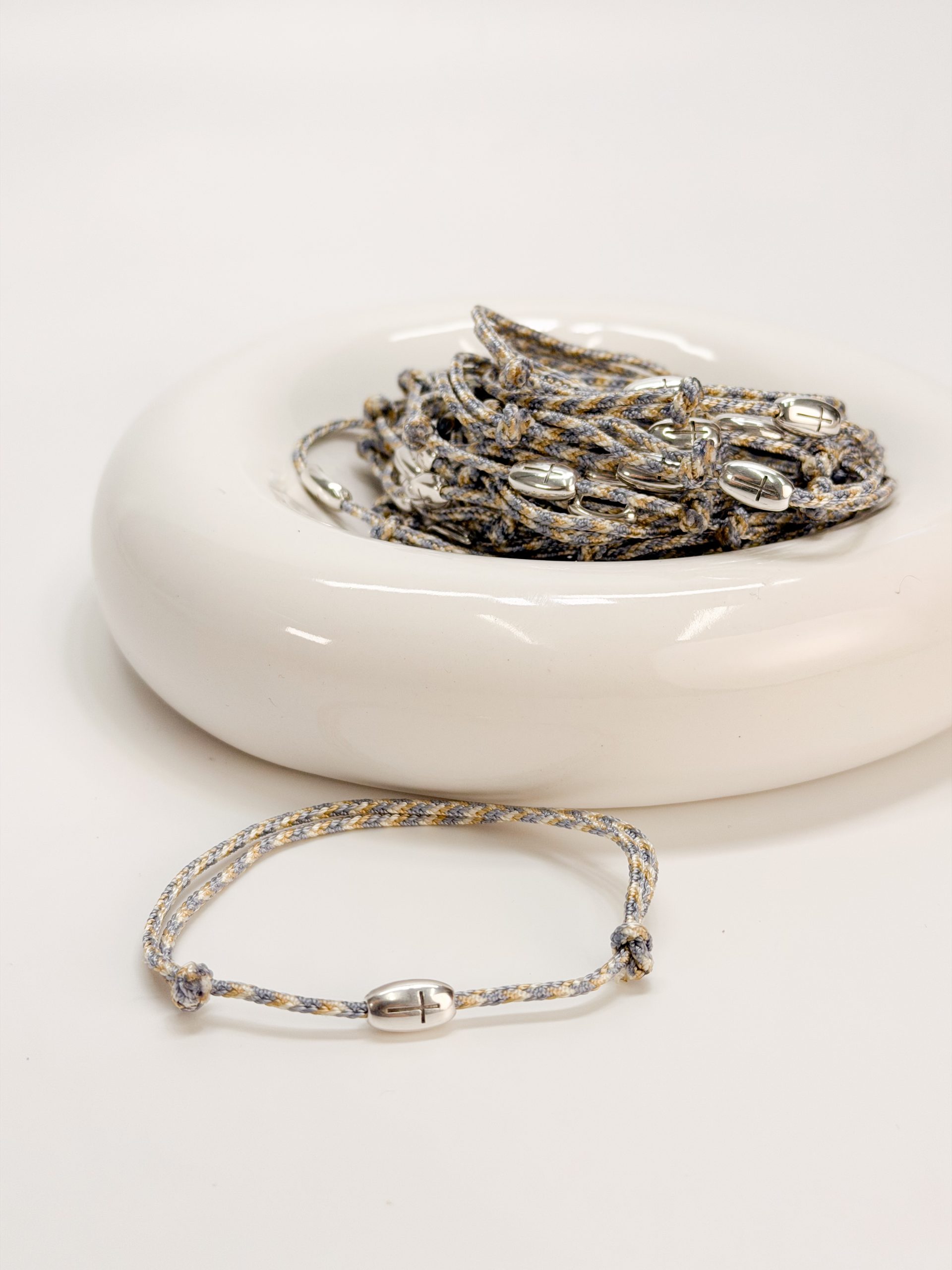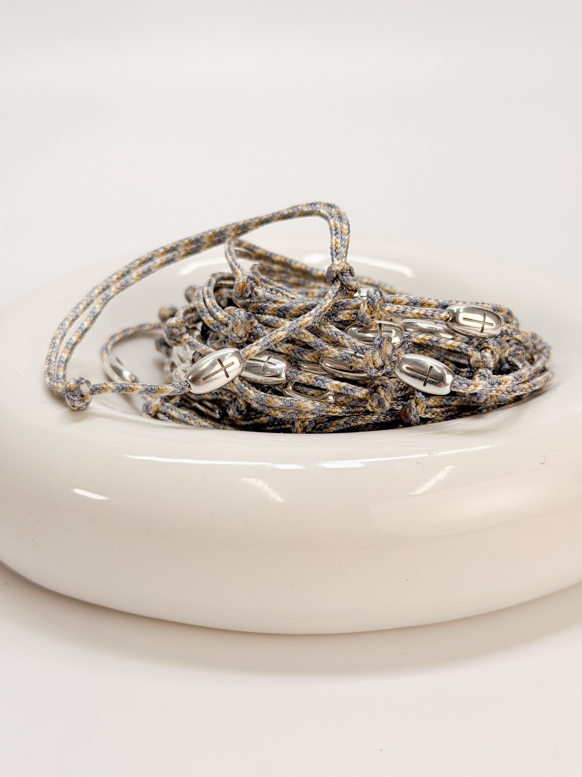Μαρτυρικό βραχιόλι CELFIE AND CO N-72 με σταυρό σε ασημί απόχρωση και κορδόνι 3 αποχρώσεων.