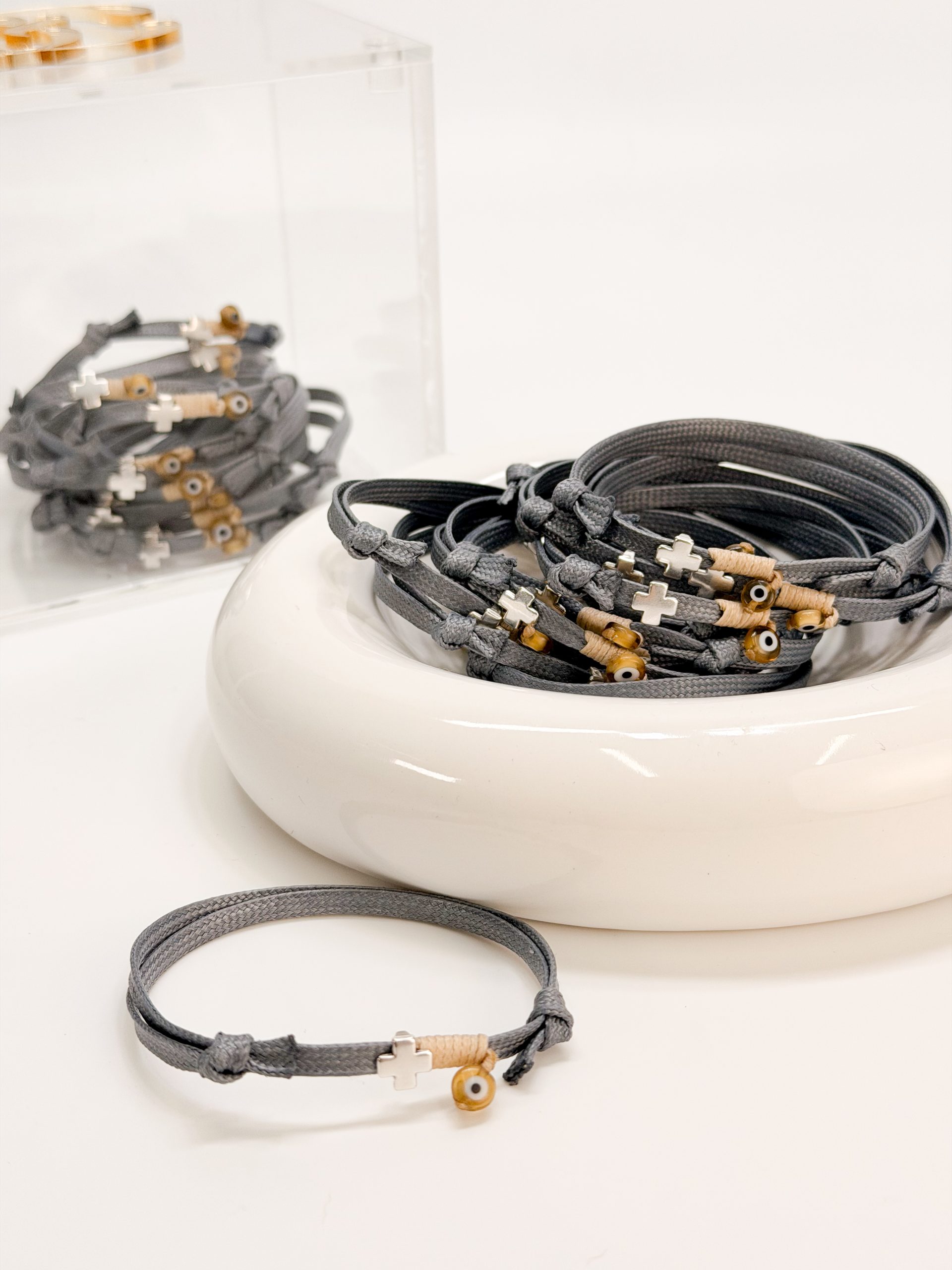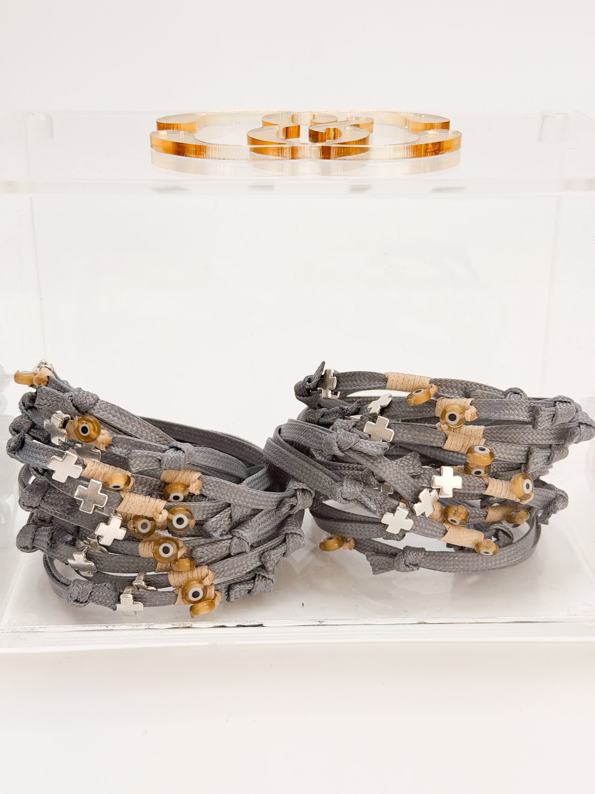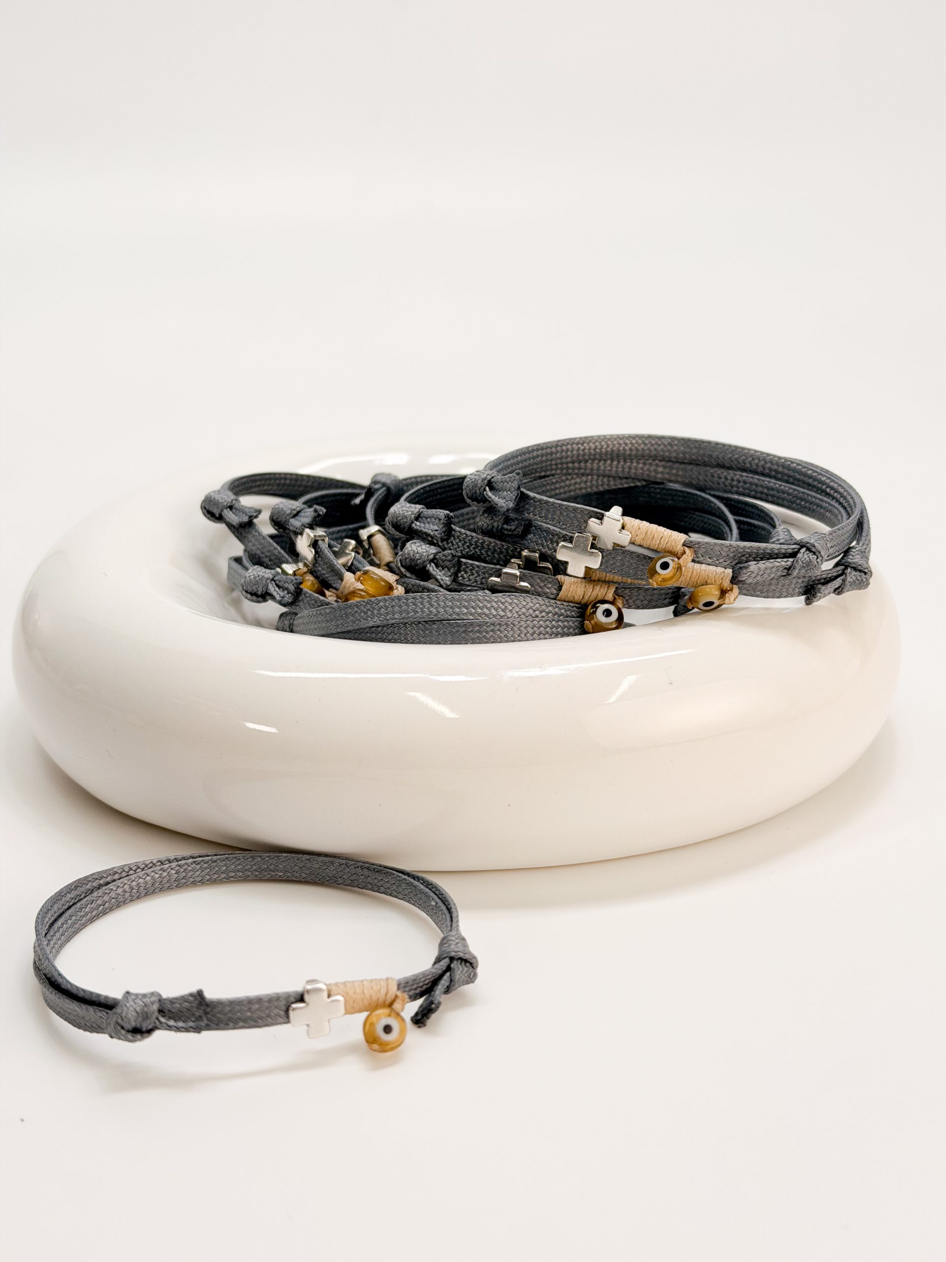 σταυρό σε ασημί απόχρωση,δέσιμο και ματάκι.