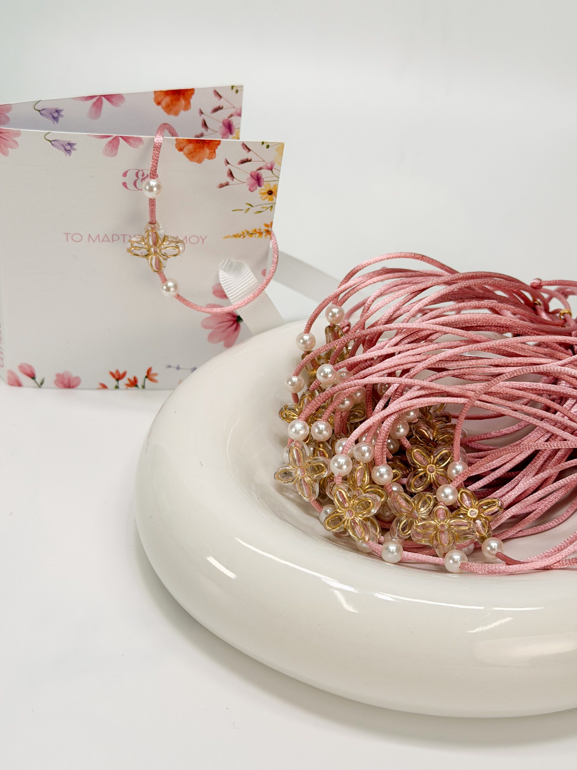 πέρλες και ακρυλικό σταυρό σε σχήμα λουλουδιού.
