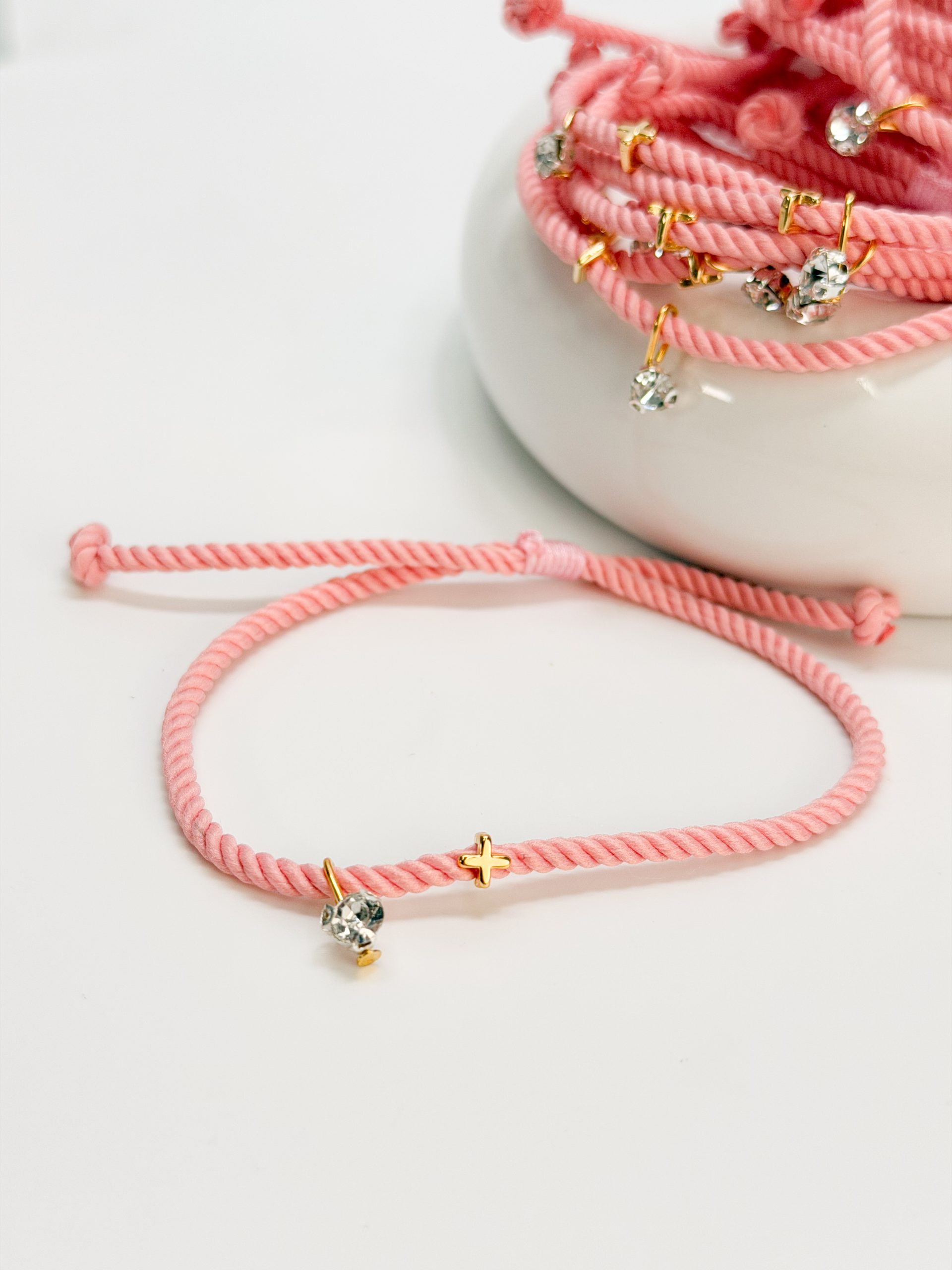 Μαρτυρικό βραχιόλι CELFIE AND CO T-84 με στριφτό κορδόνι,επιχρυσωμένο σταυρό και στρας.
