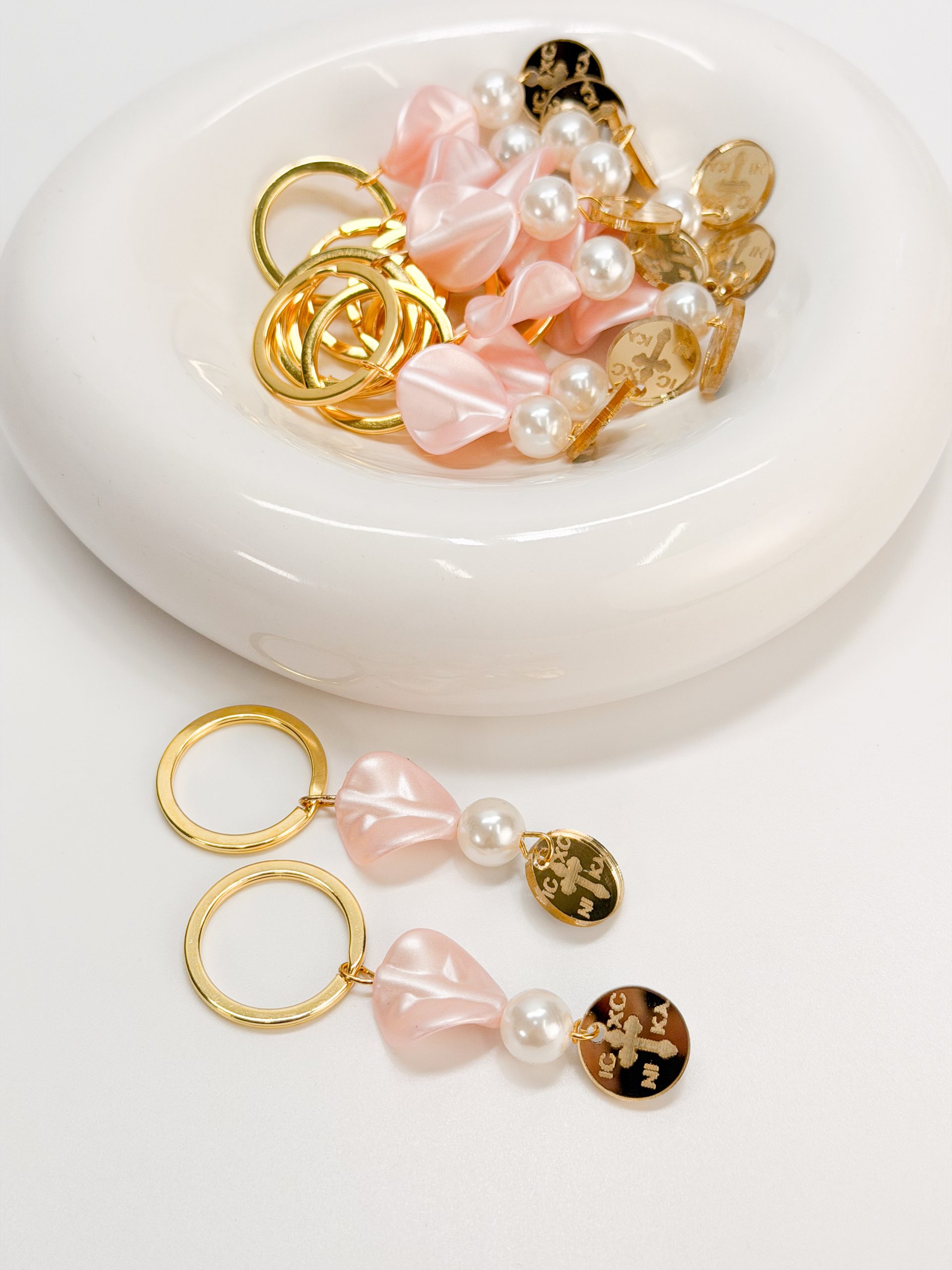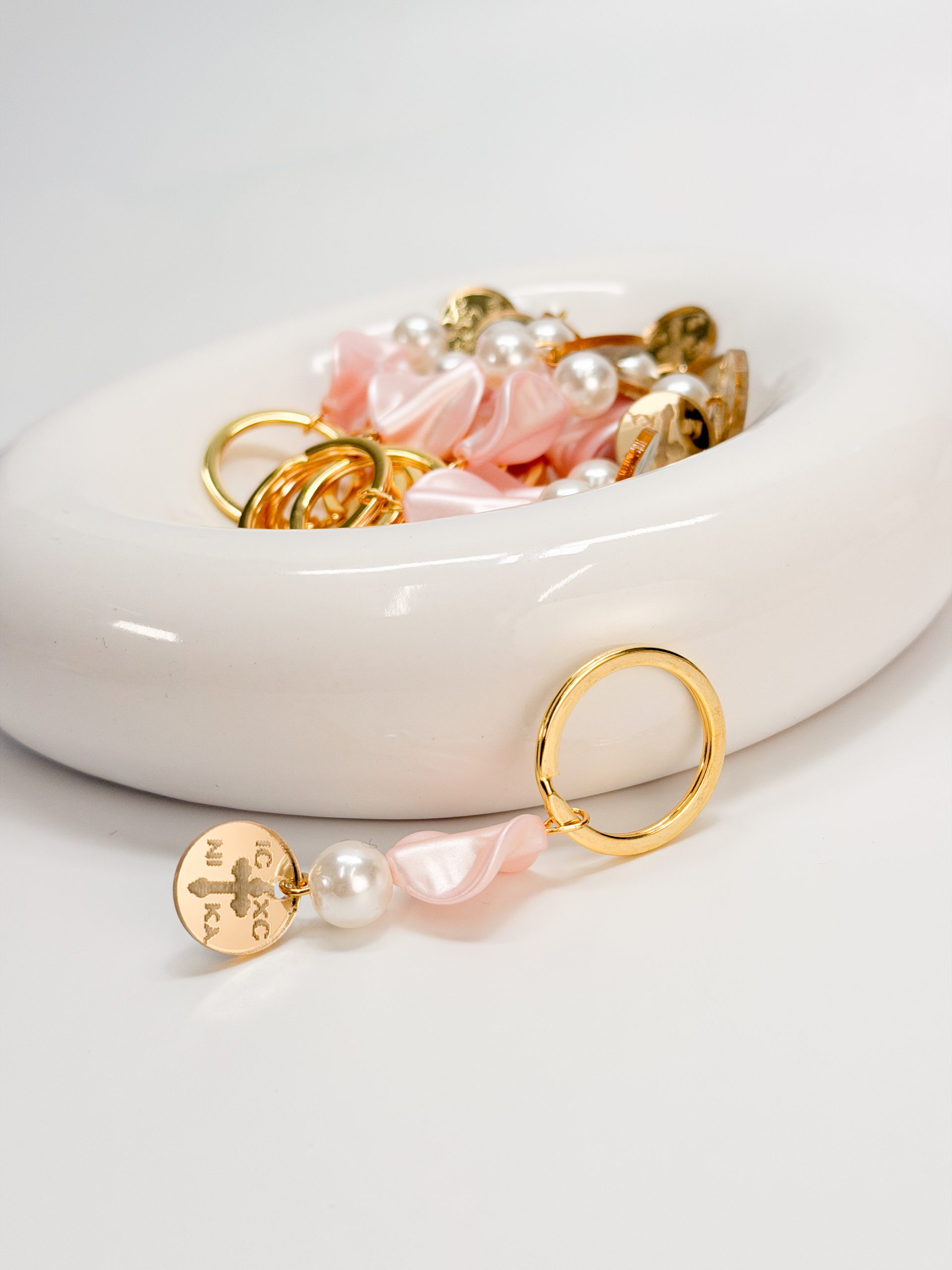 Μαρτυρικό μπρελοκ CELFIE AND CO T-85 με πέρλα,πέταλο λουλουδιού και