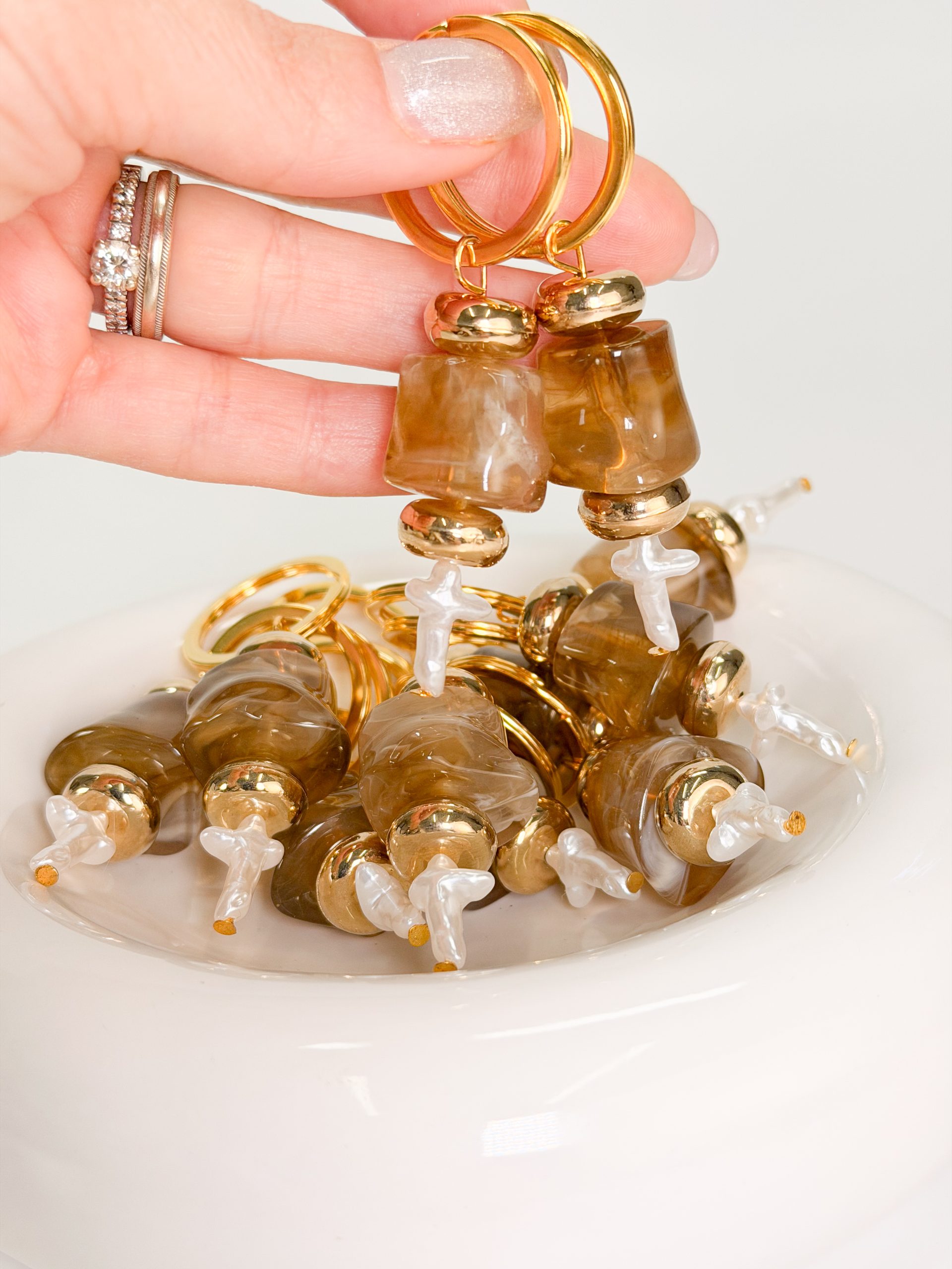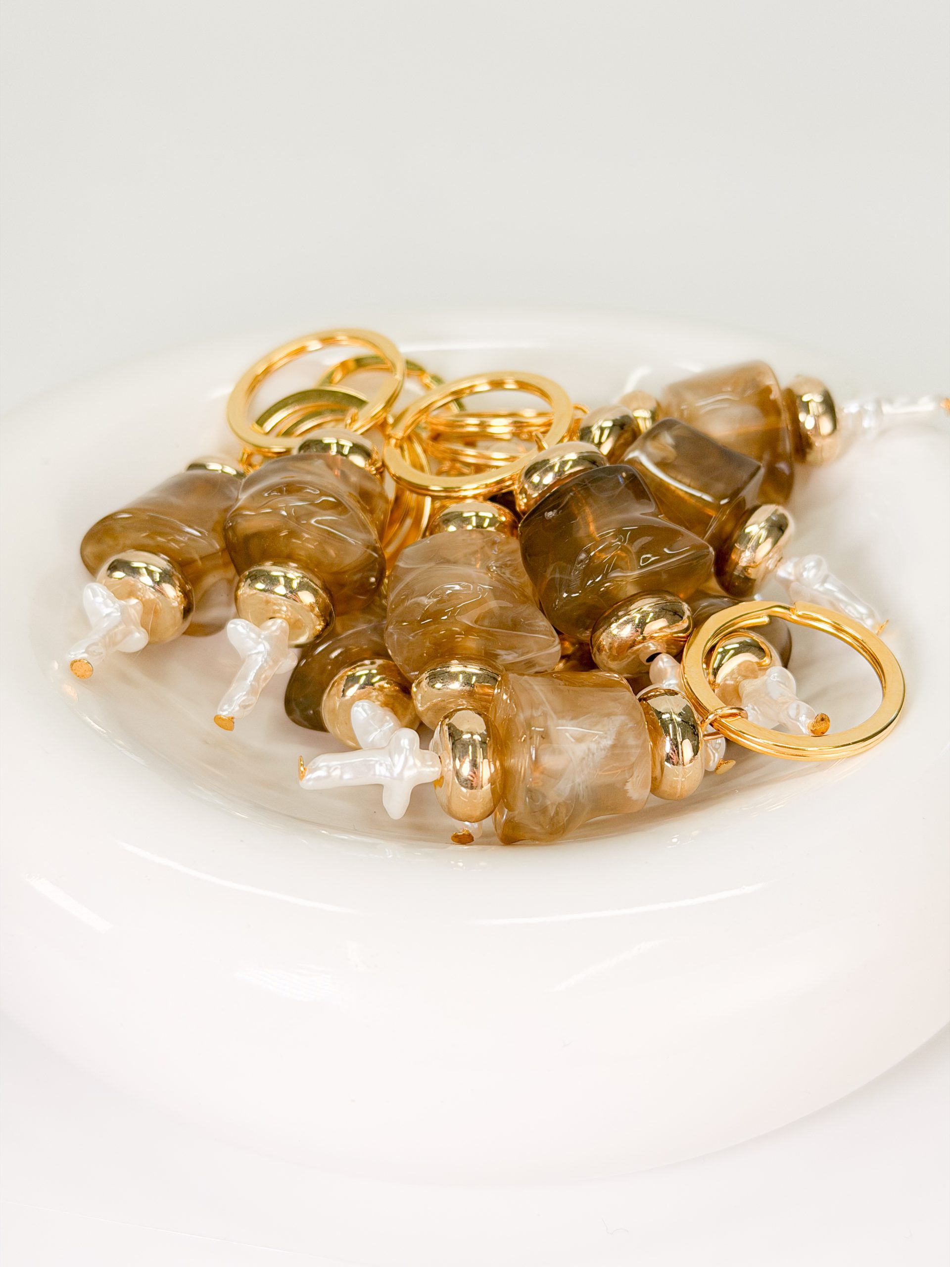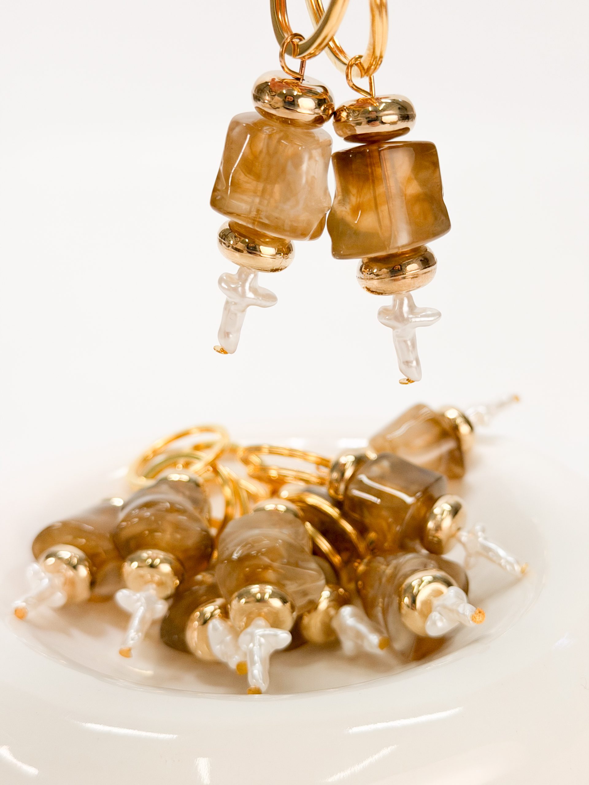 Μαρτυρικό μπρελόκ CELFIE AND CO J-4 με ακρυλική μεγάλη καφέ χάντρα,