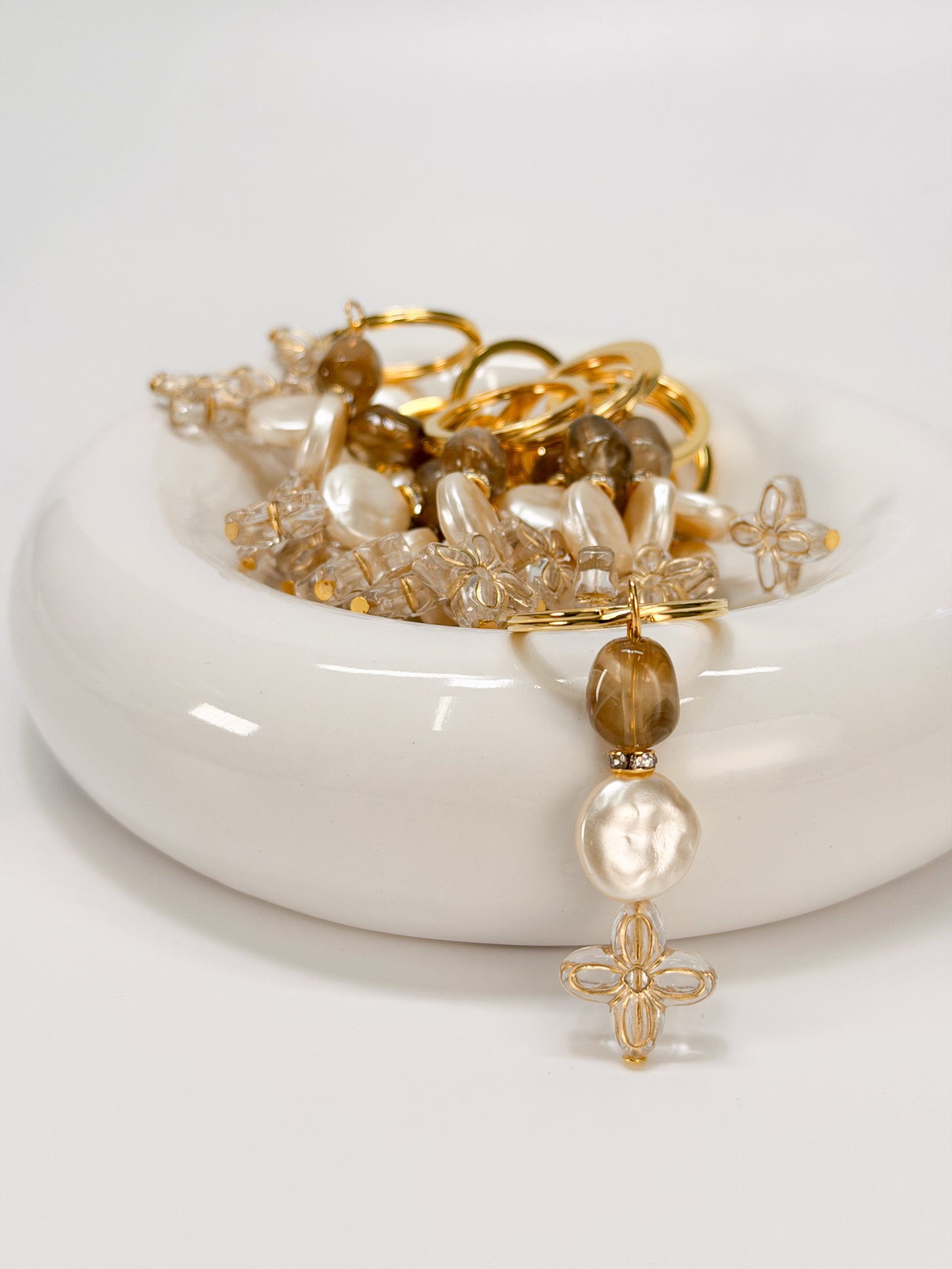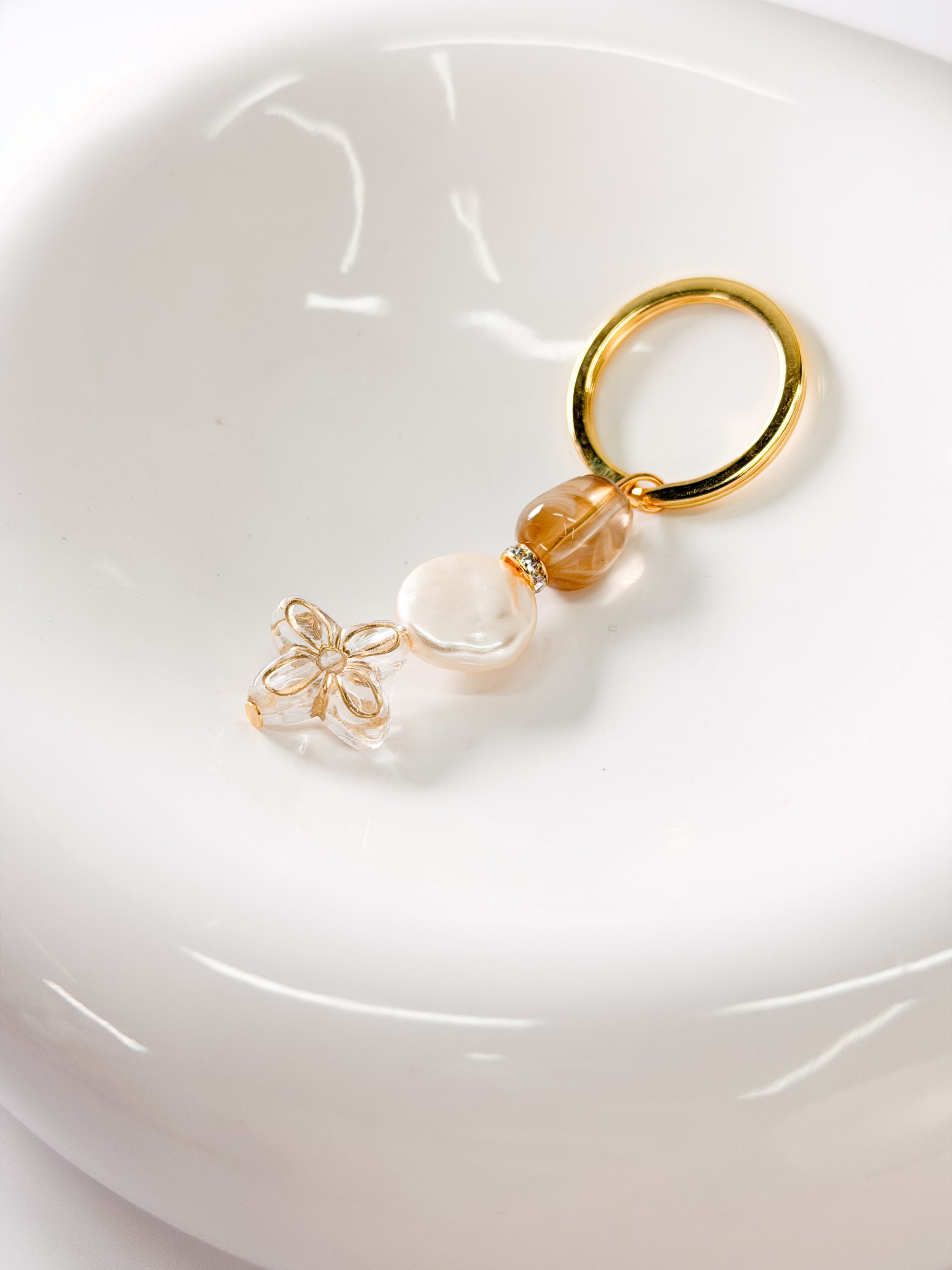 Μαρτυρικό μπρελόκ CELFIE AND CO J-8 με καφέ ακρυλική χάντρα,ροδέλα με στρας,
