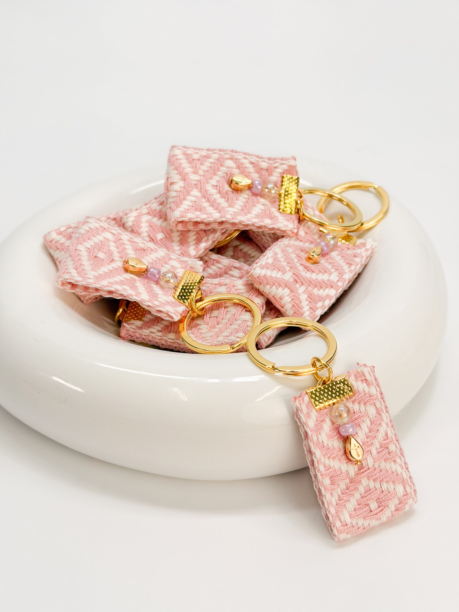 Μαρτυρικό μπρελόκ CELFIE AND CO T-83 με δίχρωμη ροζ άσπρη τρέσα,