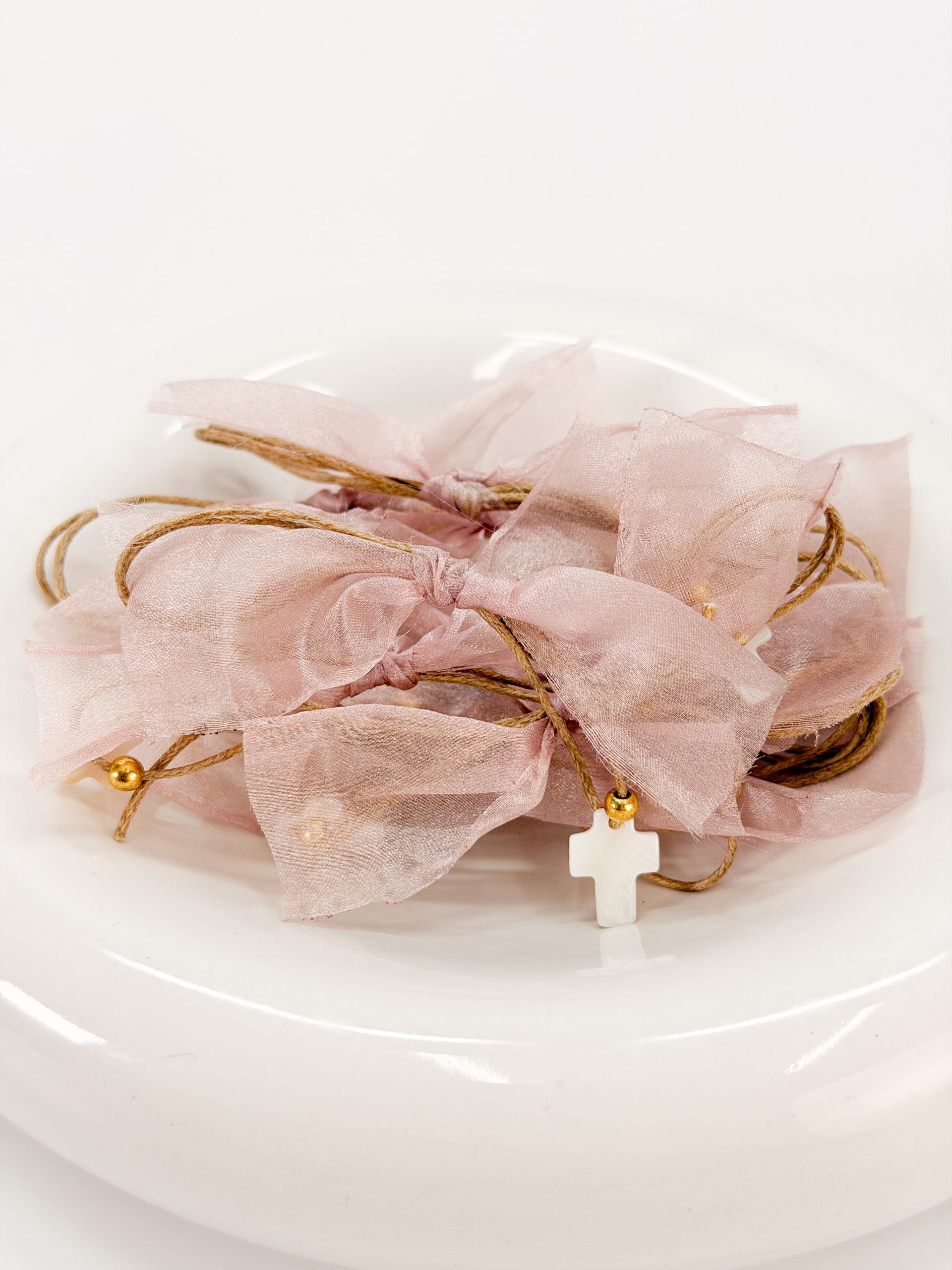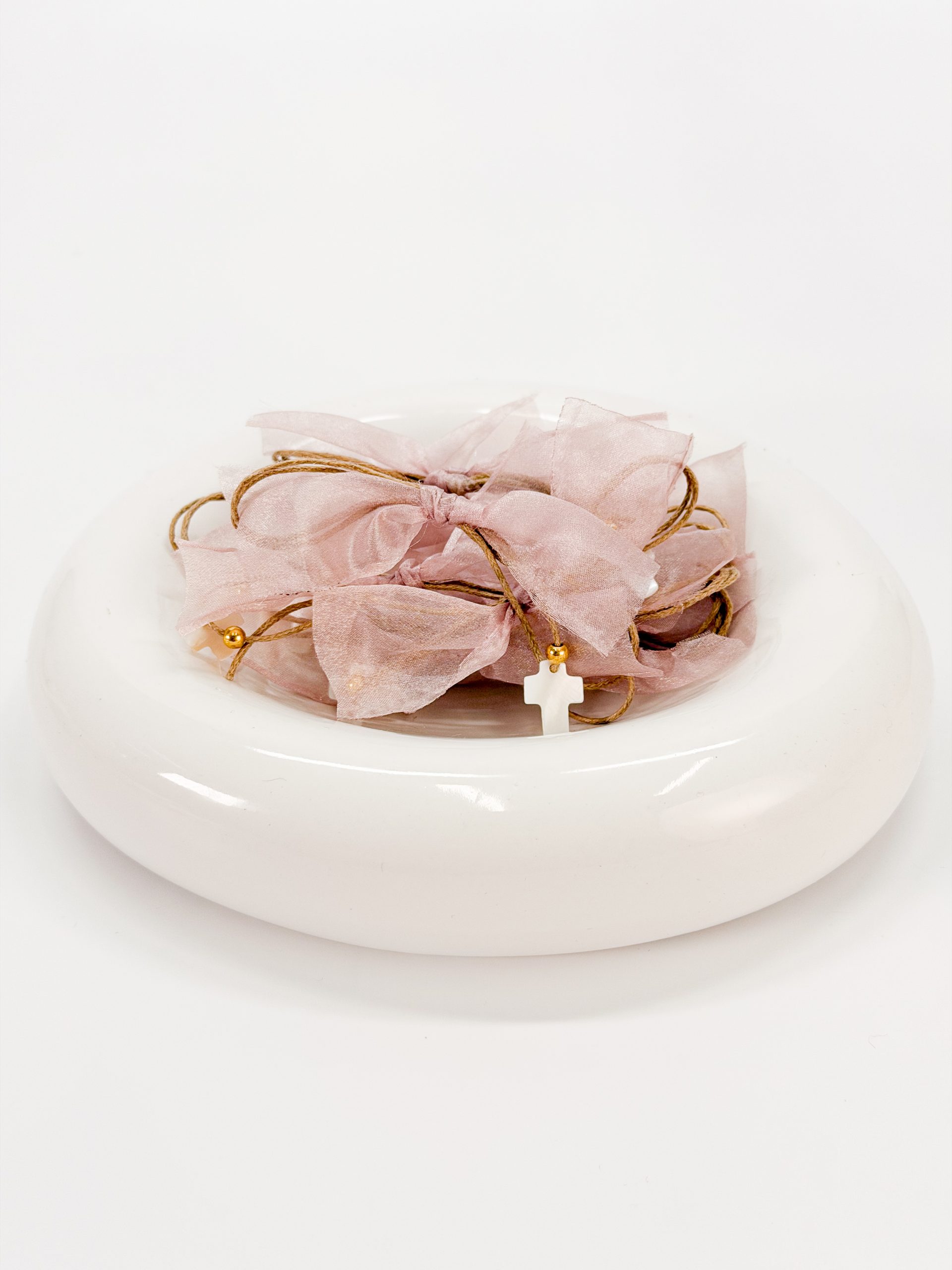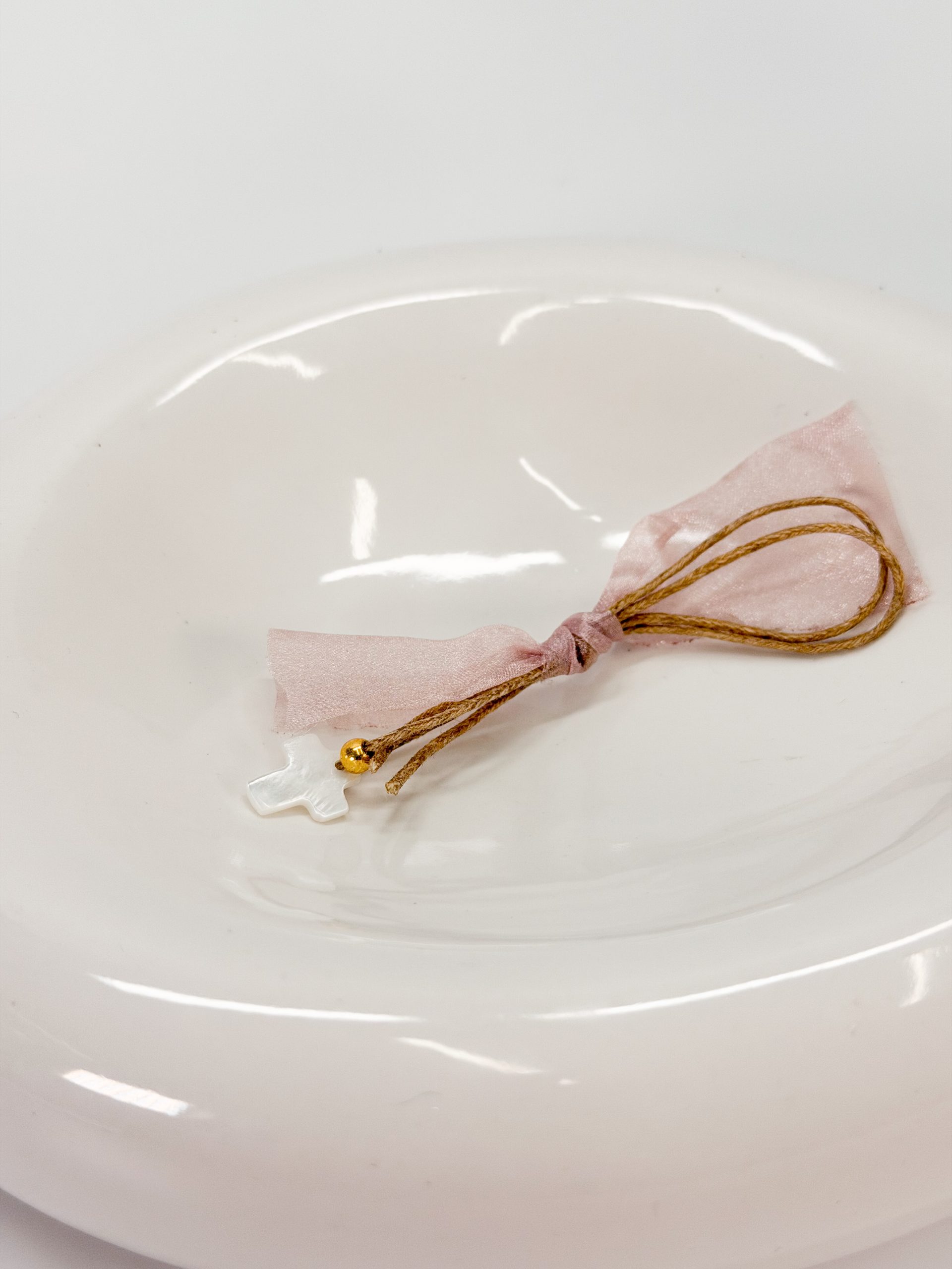 Μαρτυρικό πέτου CELFIE AND CO I-98 με μπεζ κορδόνι,φίλντισι σταυρό και σάπιο μήλο φιογκάκι.