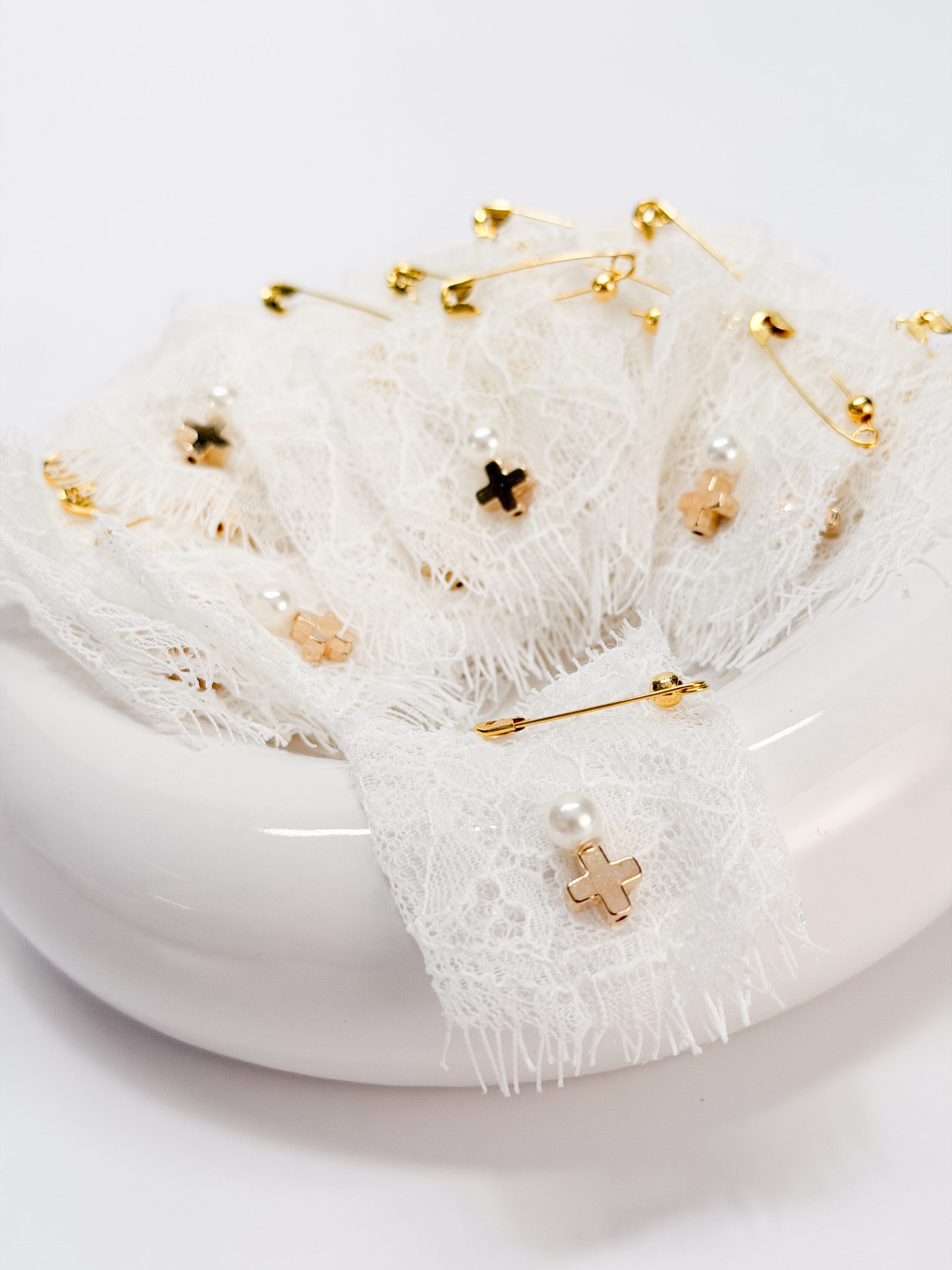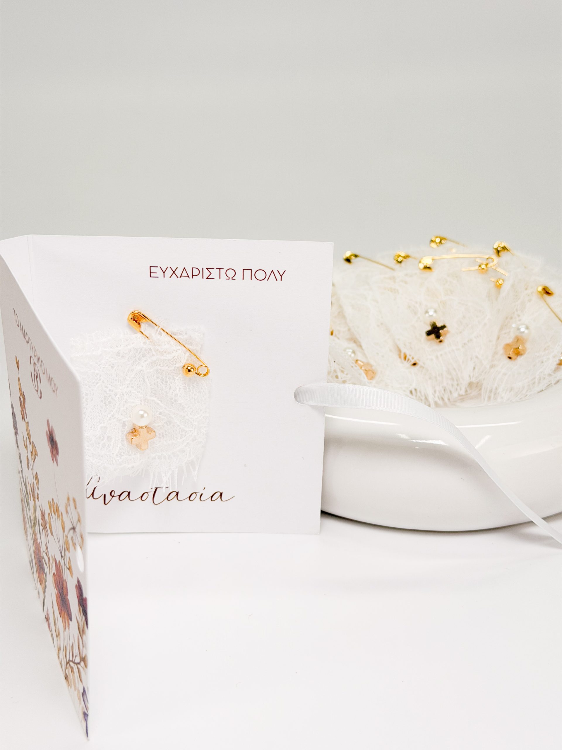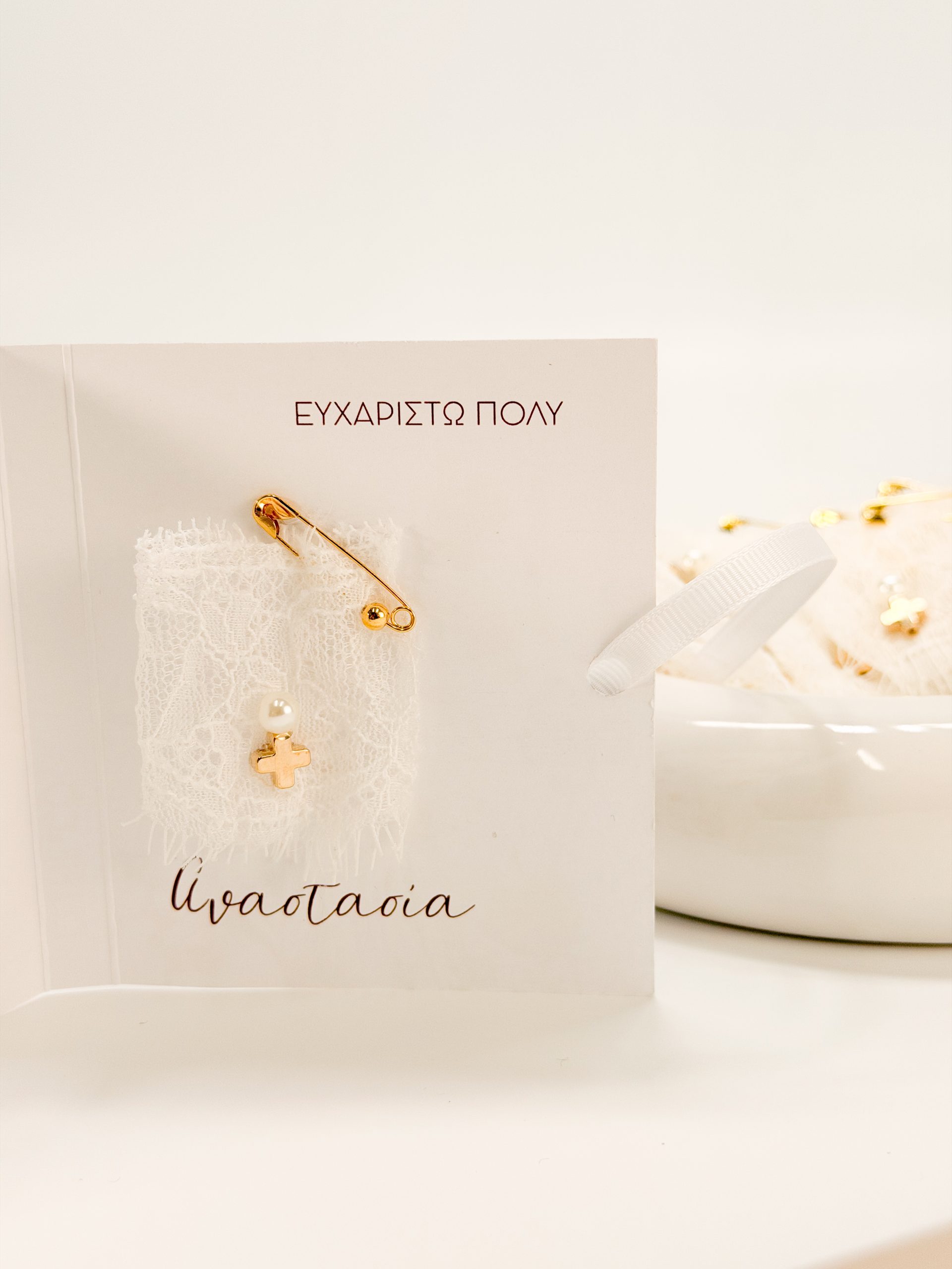 Μαρτυρικό πέτου CELFIE AND CO J-10 με λευκή δαντέλα και ακρυλικό σταυρό.