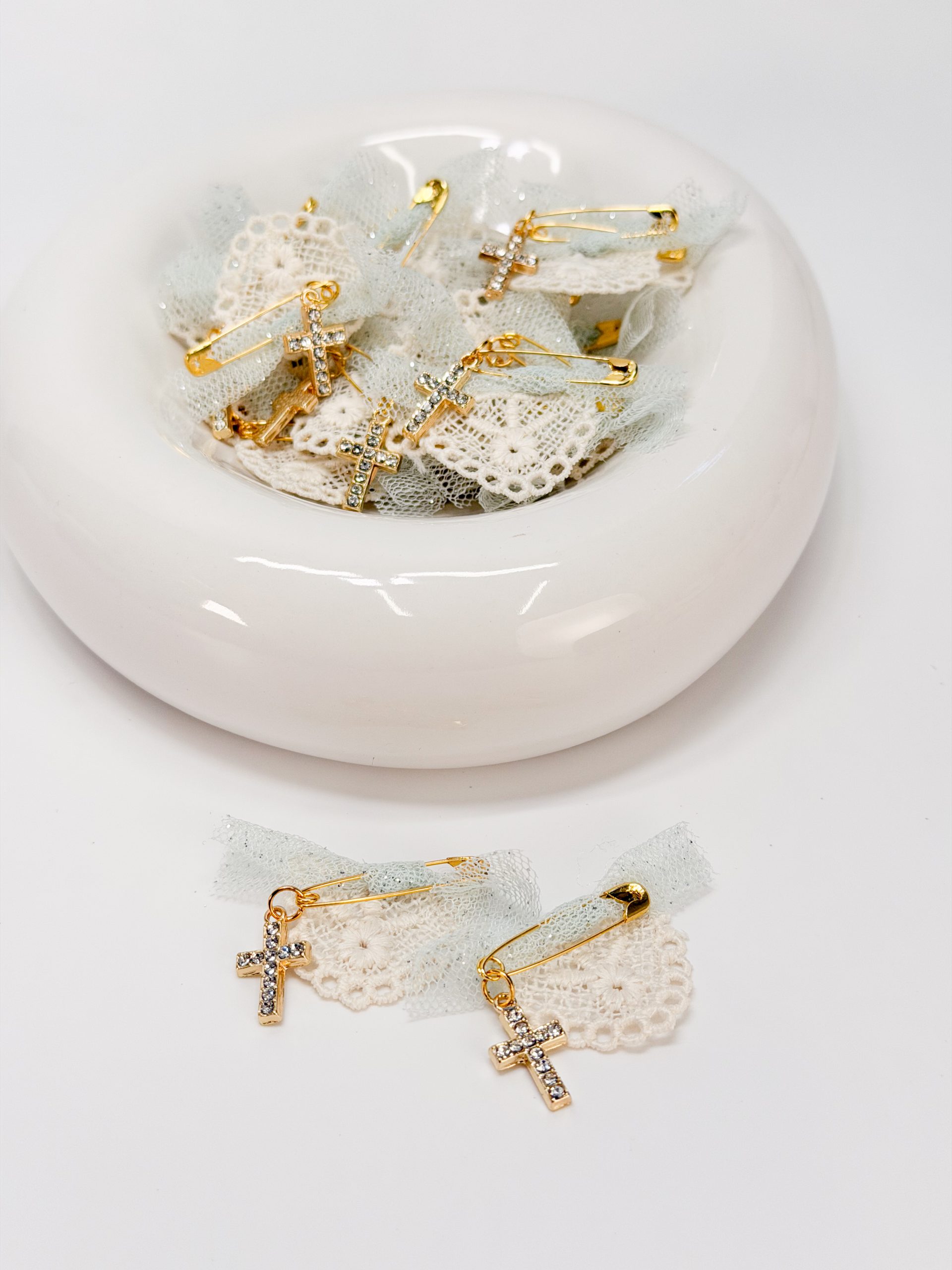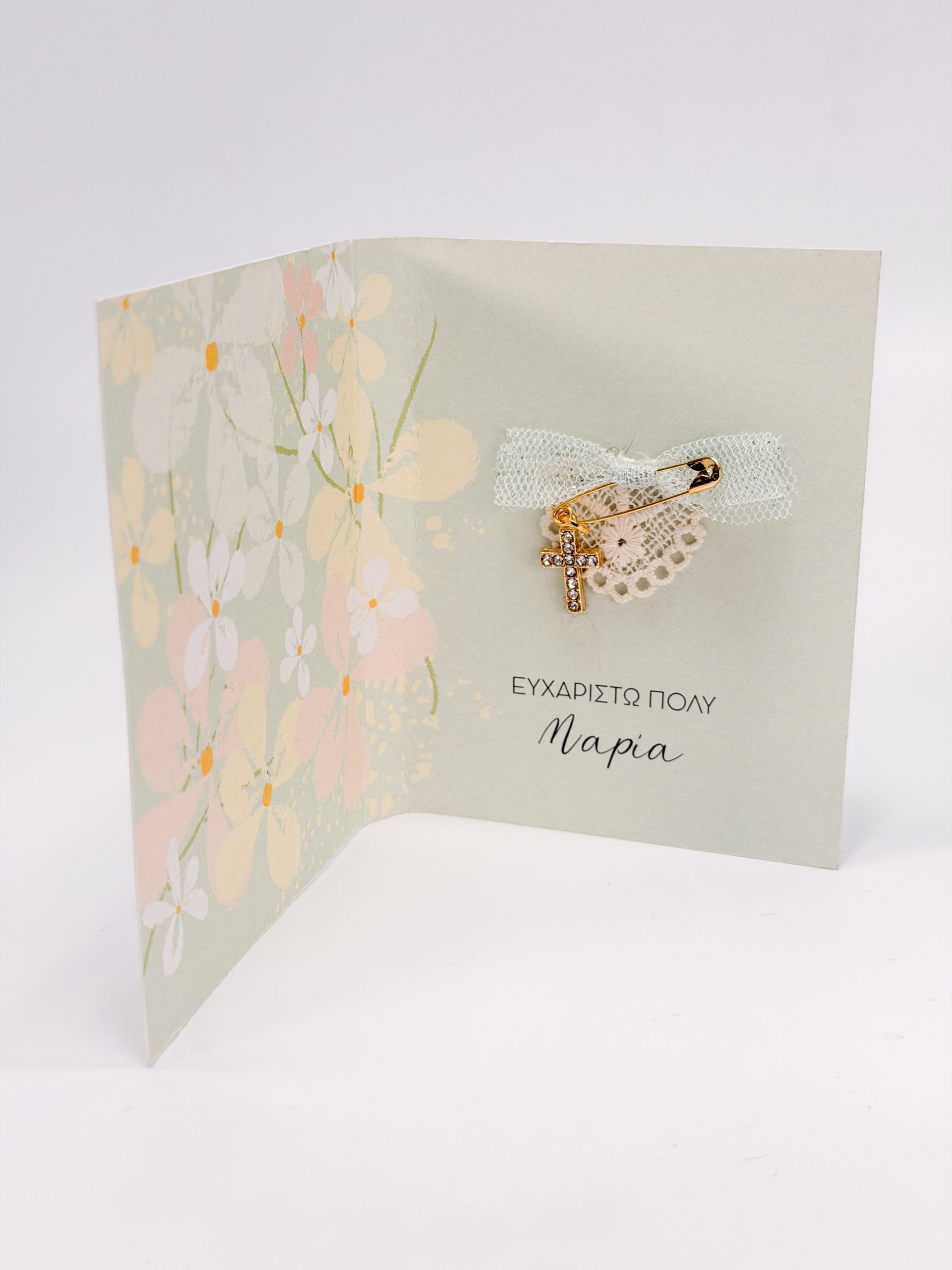 Μαρτυρικό πέτου CELFIE AND CO M-43 με δαντέλα,τούλι βεραμάν με ασημί γκλιττερ και επιχρυσωμένο σταυρό με στρας.