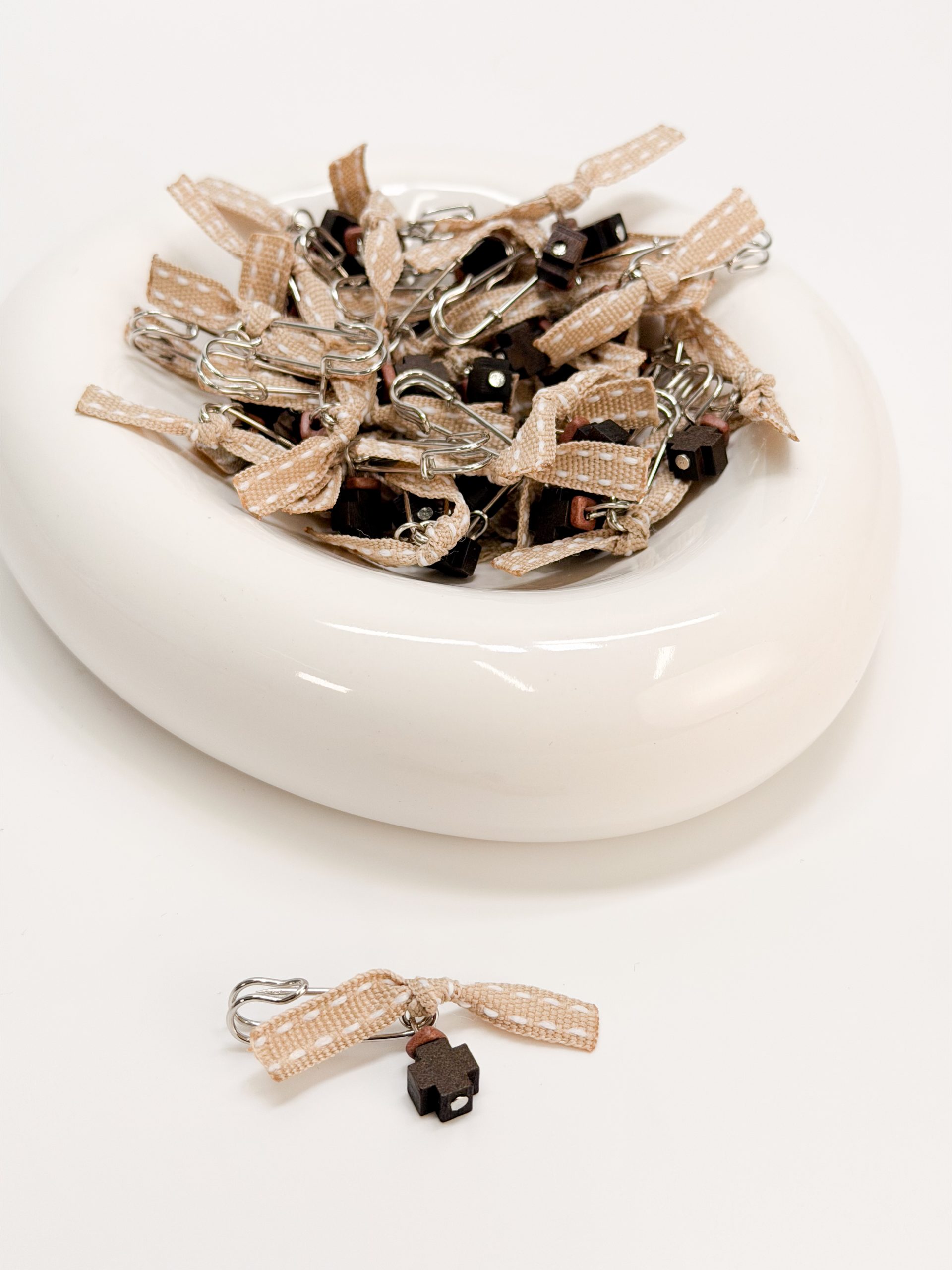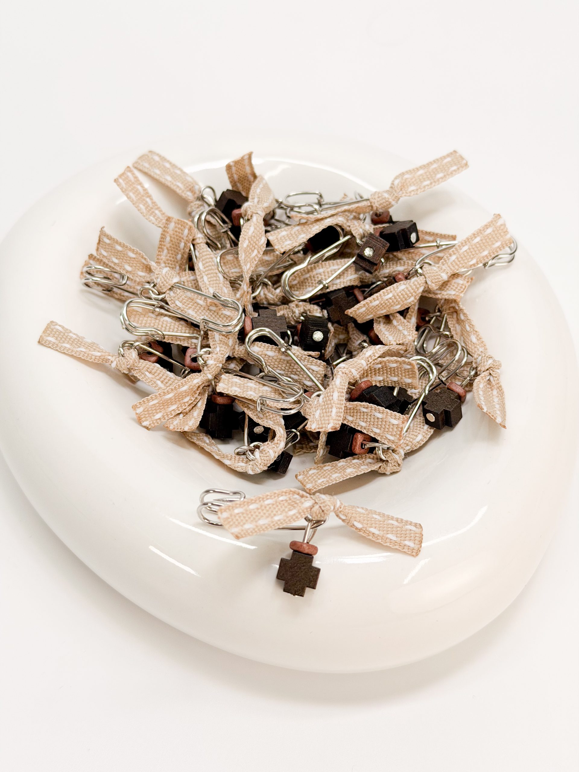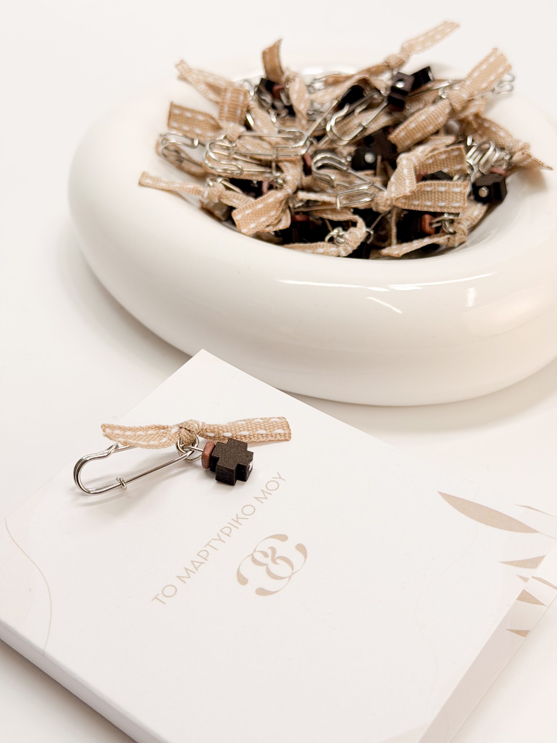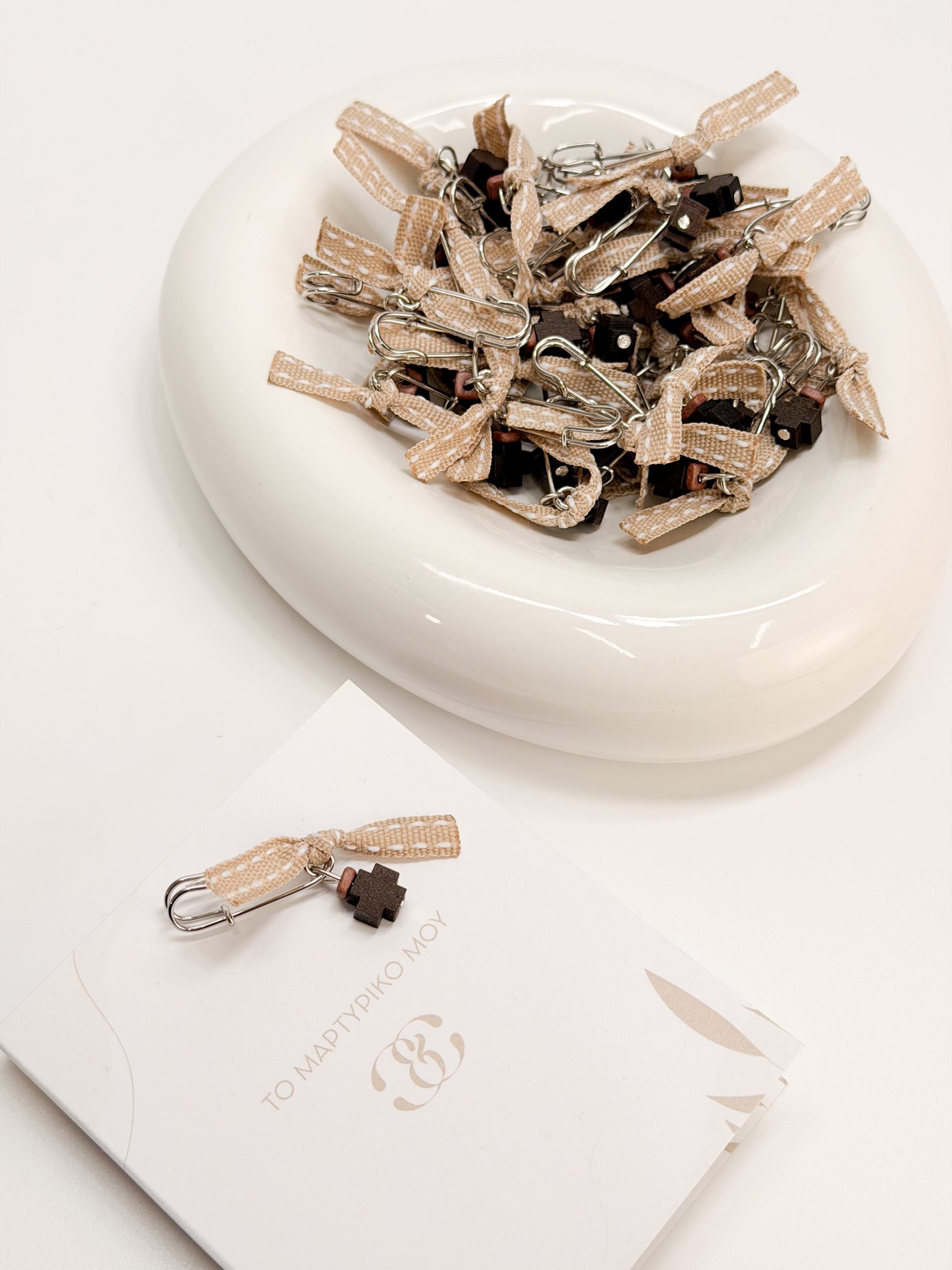 καφέ ξύλινο σταυρό,μπεζ κορδελάκι.