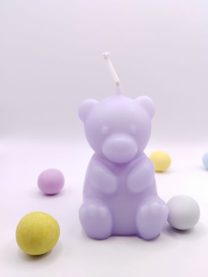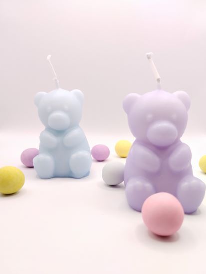 Μπομπονιέρα Βάπτισης κερί αρκουδάκι, διαθέσιμη χρώματα ροζ μωβ βεραμάν φούξια σιελ εκρού.