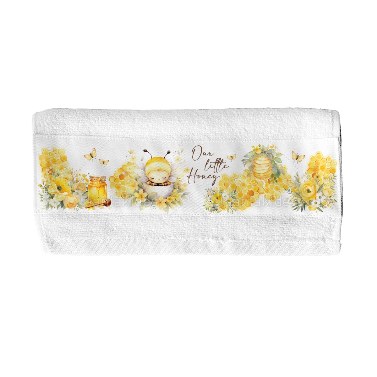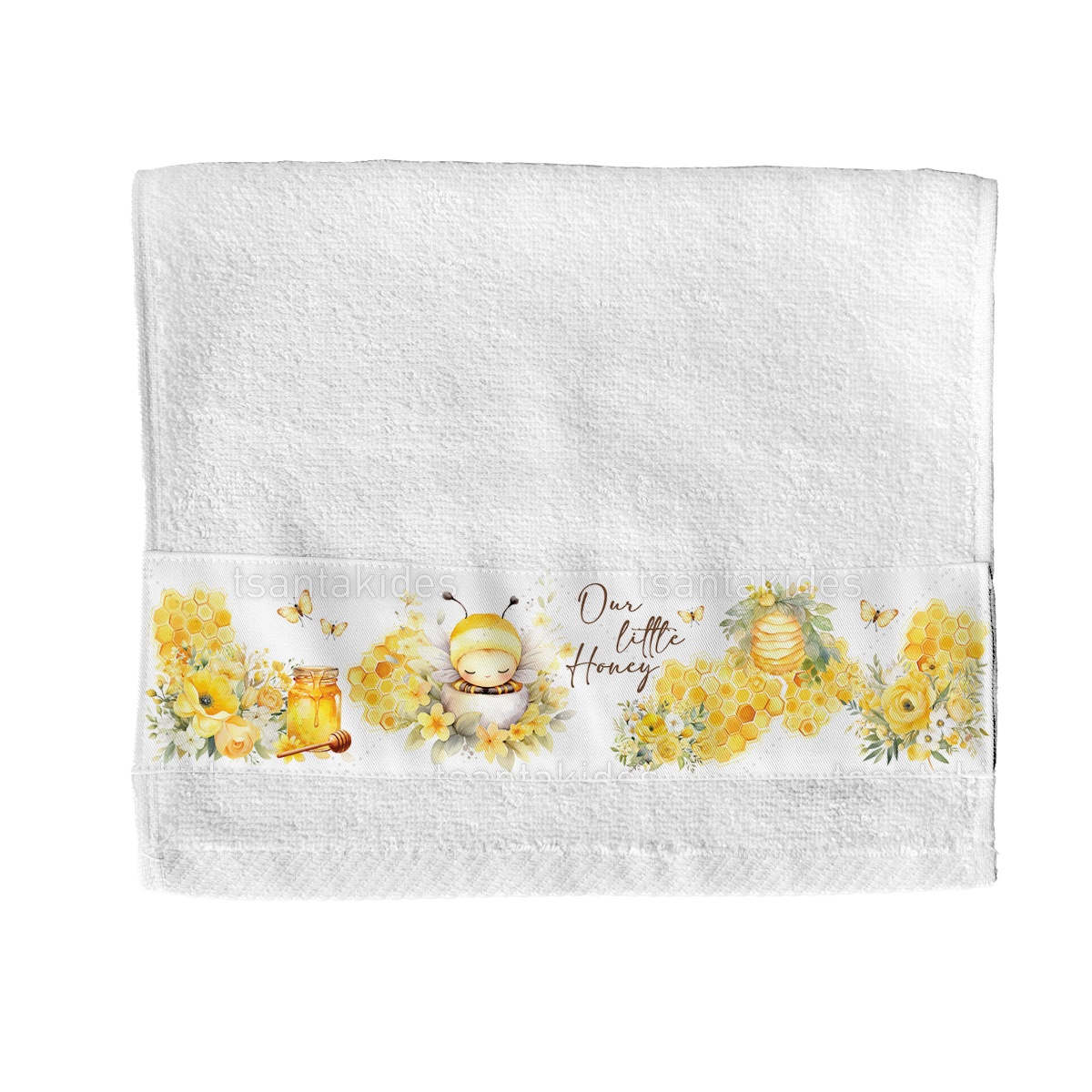 Μπομπονιέρα Βάπτισης Πετσέτα Υφασμάτινη με Φάσα Εκτυπωμένη και Ραμμένη.