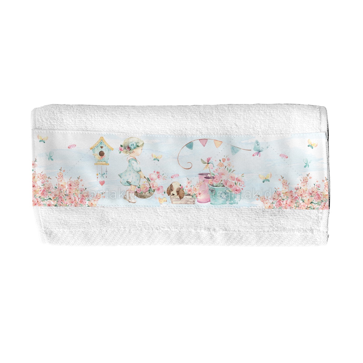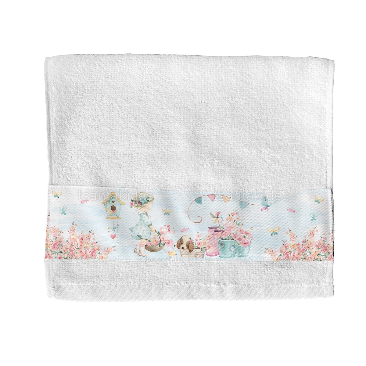 Μπομπονιέρα Βάπτισης Πετσέτα Υφασμάτινη με Φάσα Εκτυπωμένη και Ραμμένη.