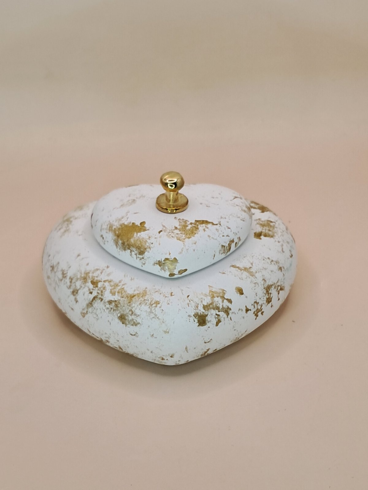 Μπομπονιέρα Γάμου Κεραμική καρδιά με πόμολο σε λευκό & χρυσό χρώμα.
