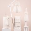 Βαπτιστικό πακέτο Piccolino Melody ivory περιλαμβάνει φόρεμα ,σετ λαδόπανα, λαμπάδα, λαδοσετ και στολισμένο barel off white